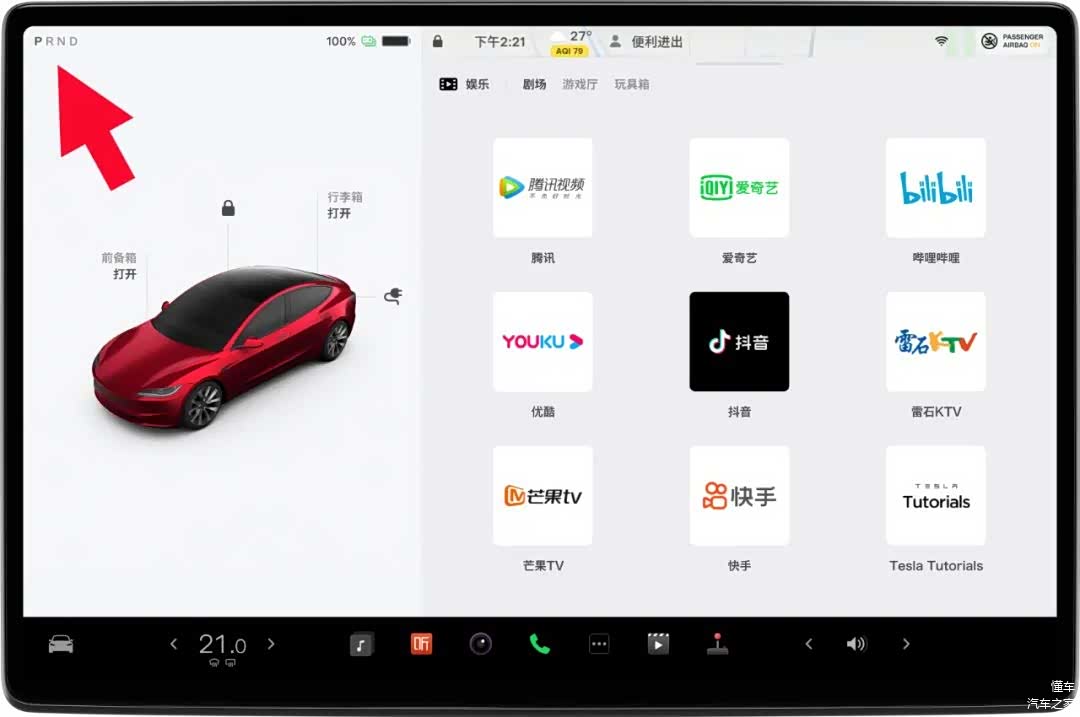 不过不管是旋钮还是按键,至少都还有实体存在。这次Model 3改款,去掉了原来的怀挡,转而通过在中控屏左侧滑动换挡。
