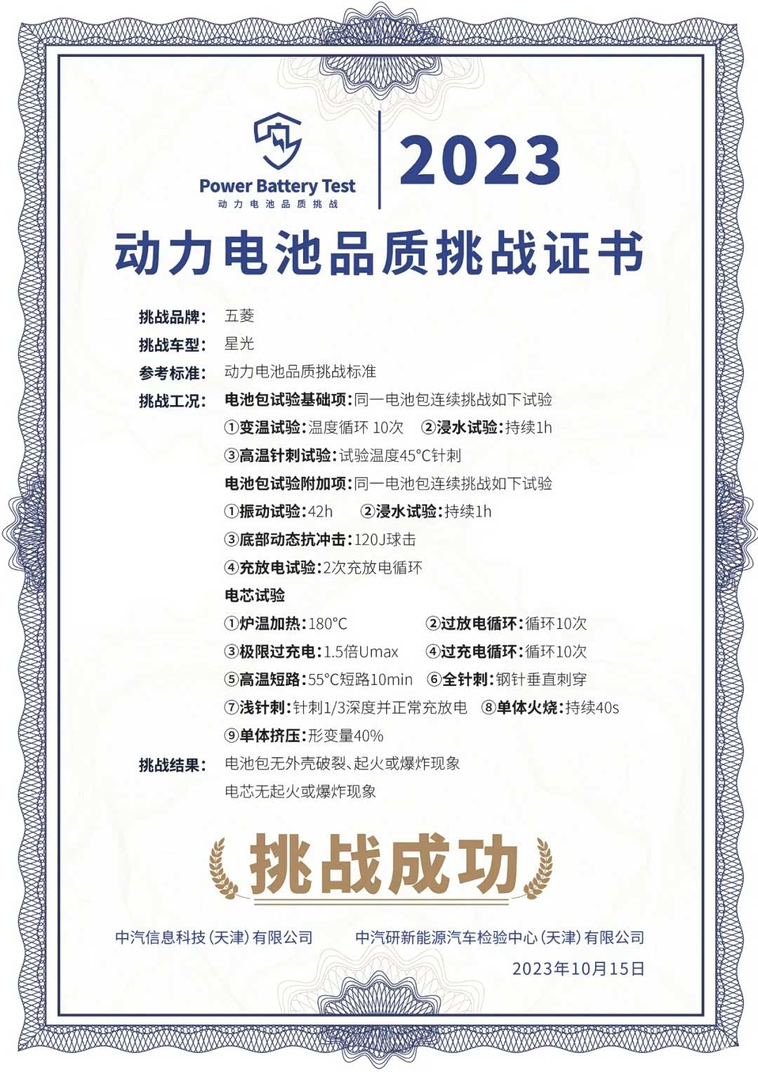 对电池的考验更加严苛,神炼电池历经超过2000项台架测试,490多项整车验证,涵盖高温、高寒、高原三高严苛测试与标定。在针刺实验上,五菱神炼电芯即使刺穿三分之一,依旧能正常循环。