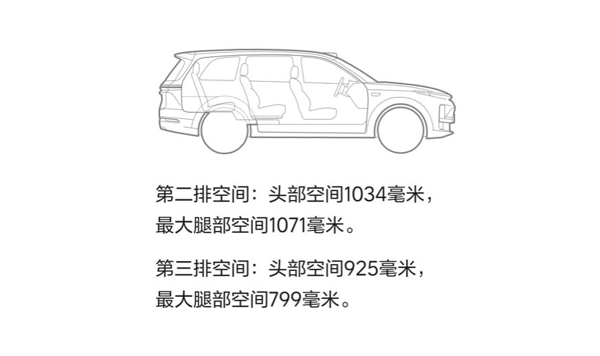 来源:网络全车座椅均提供电动滑轨,且座椅后方还拥有 MagLink 魔吸车载接口、第三排提供水杯架、空调出风口、音响等多种配置。而理想L9的二三排空间数据如下: