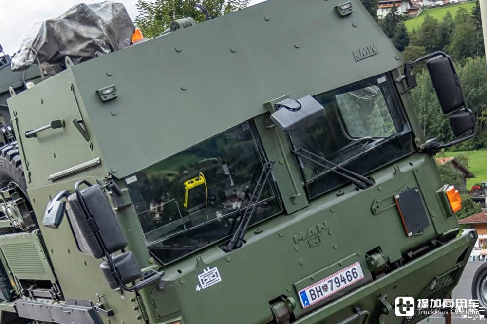 这台SX 45 8x8的驾驶室由德国知名军工企业:克劳斯-玛菲韦格曼(KMW)打造,整体采用防弹装甲板构成。驾驶室框架采用高强度金属制成,车顶、驾驶室侧壁乃至前脸均附加有防弹板,可防御7.62x51毫米子弹,提供更好的保护性能。不过,较高的重量也使得车门开闭变得困难。因此,SX 45 8x8军卡的车门配备了液压系统,辅助开关车门。