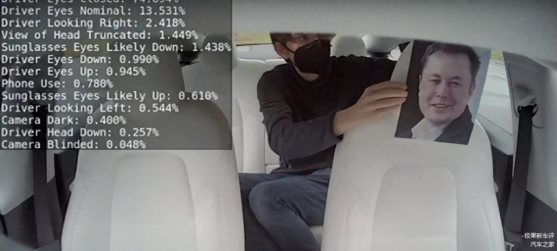 在“埃隆”模式下,方向盘提示功能会关闭,脱手状态下也不会通过方向盘震动提醒,而是完全通过车内摄像头来监控司机的状态,保证司机不会分心。