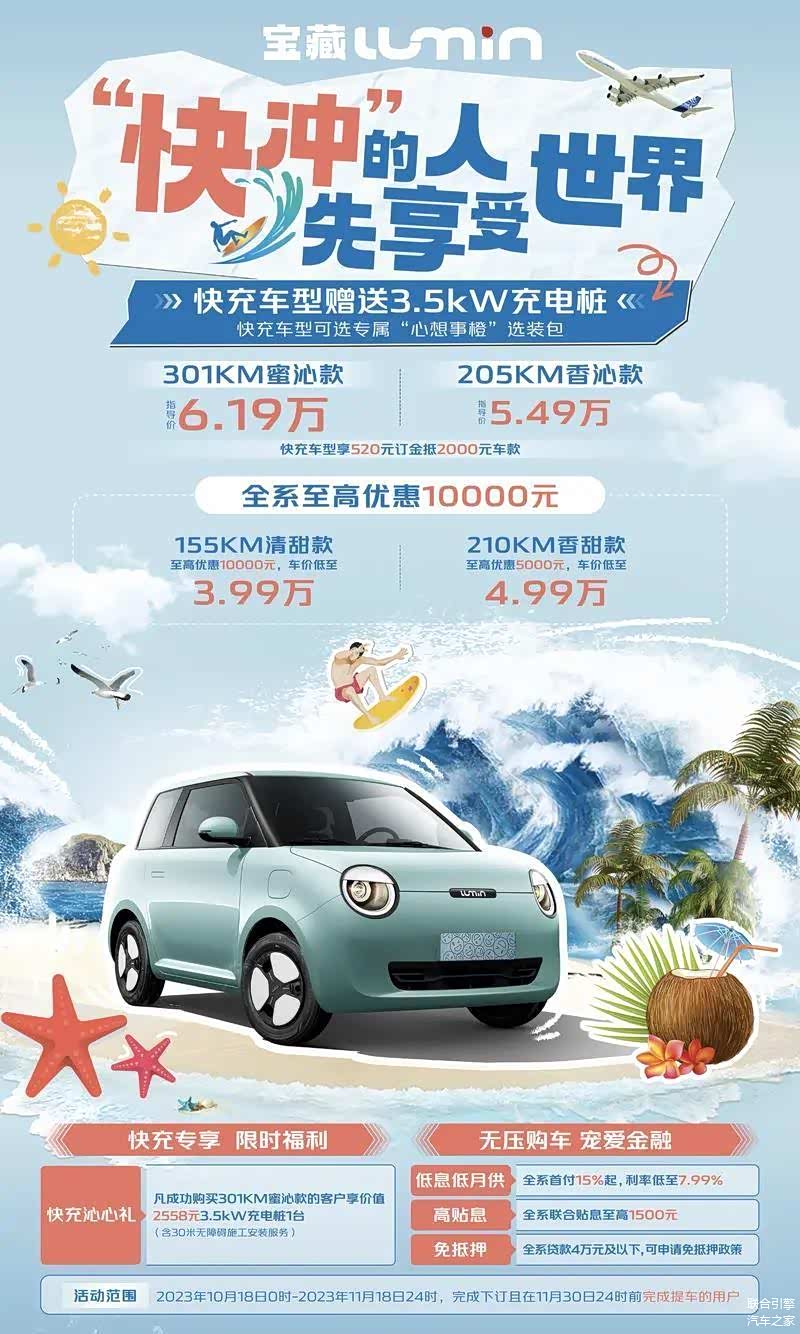 10月18日长安糯玉米Lumin301km蜜沁款以6.19万元的价格进入市场,开启预订。是一款基于EPA0纯电动平台打造的纯电动微型车。8月份长安推出支持快充功能的205km香沁款后,301km蜜沁款快充车型也紧随其后,为消费者们提供了另一个选择。