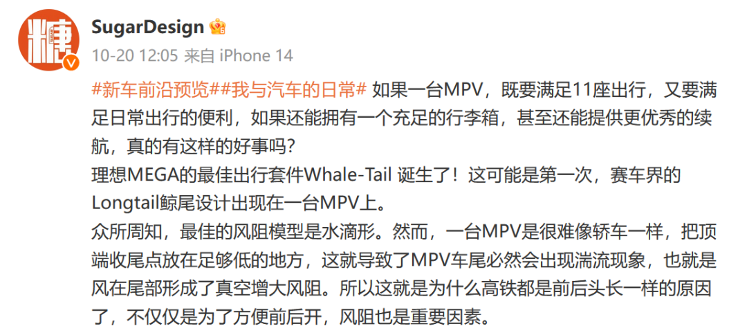 理想MEGA的最佳出行套件Whale-Tail 诞生了!这可能是第一次,赛车界的Longtail鲸尾设计出现在一台MPV上。