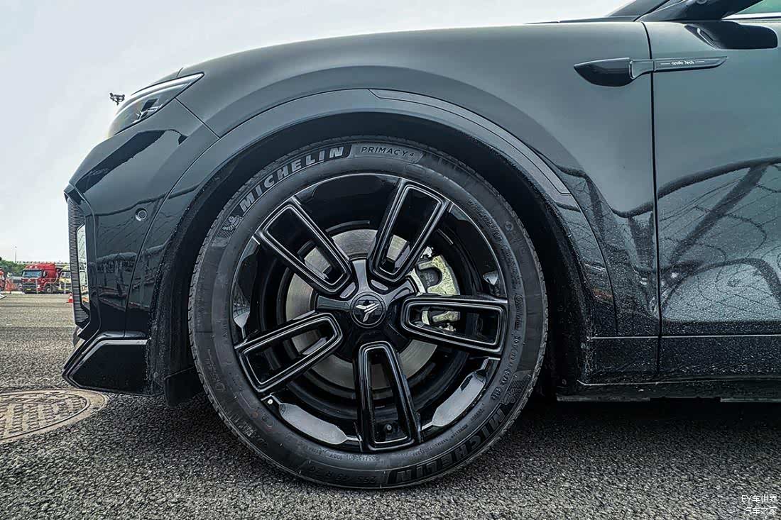 熏黑的20英寸双五幅轮毂造型很运动,轮胎使用的是米其林浩悦4,尺寸为255/45 R20。