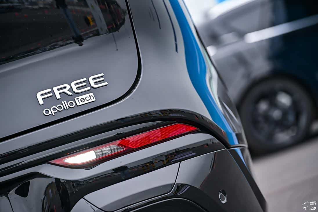 车尾继续配备了贯穿式尾灯,灯组内部进行了熏黑处理。尾门右下方增加“Apollo Tech”标识,代表该车搭载了百度Apollo智能辅助驾驶系统。