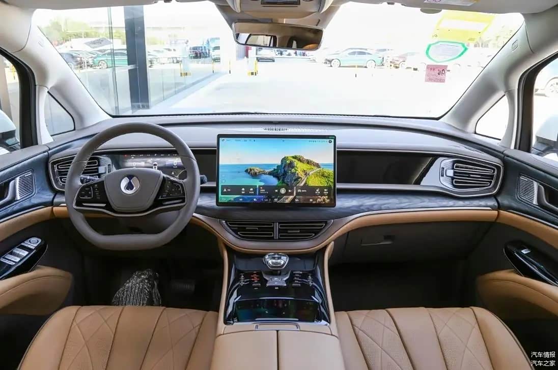 说完外观,聊聊车内。对于这个级别的MPV车型来说,前排已经不重要了。况且腾势D9和魏牌高山作为中国品牌高端MPV的代表作,基本的设计、智能化都无需担心。所以,关于前排设计这方面我们就不再赘述了,直接进入重点,看后排。