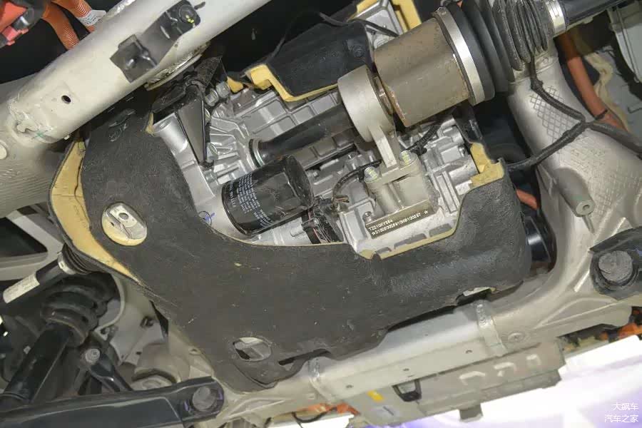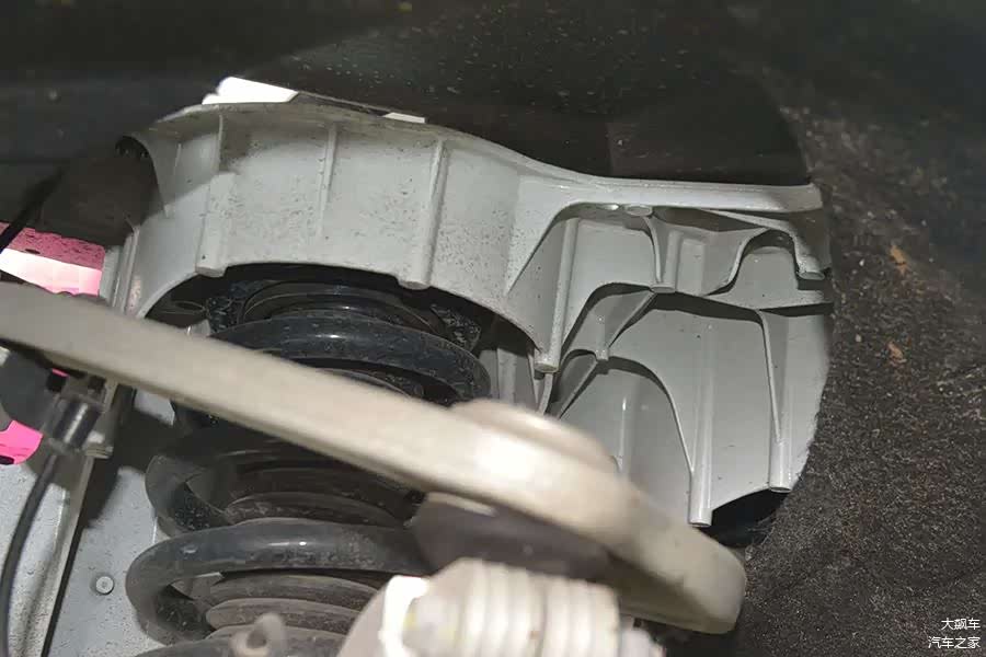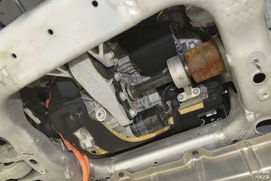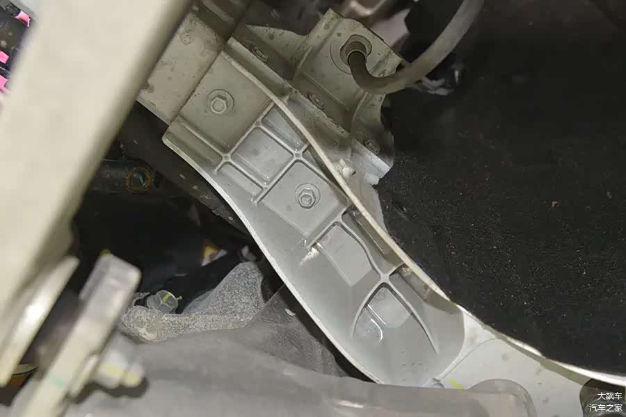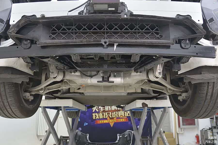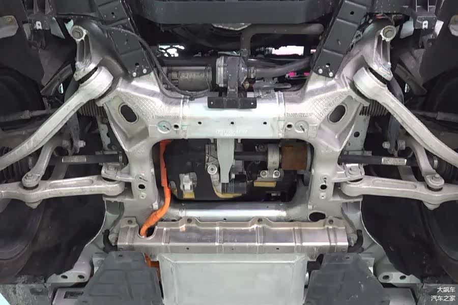 前副车架是全框结构,采用铝合金材质,非常粗壮。