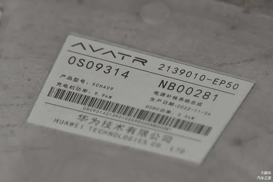 后驱电机同样是华为DriveONE永磁同步三合一电机,同样支持748V宽电压输入,支持800V高压平台。后电机也进行了功率限制,原本270千瓦的最大功率,在这辆车上只能输出230千瓦,最大扭矩370牛米。前后电机不仅都是油冷散热,而且包裹了一层厚厚的隔音棉。