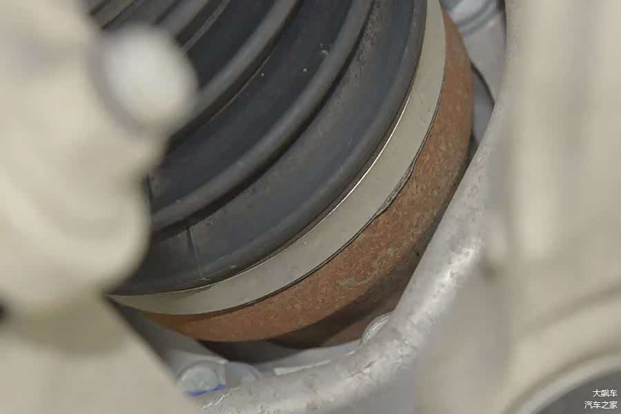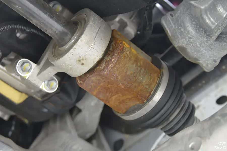 这辆没买多久的准新车,前后半轴球笼罩都出现了明显的生锈情况。