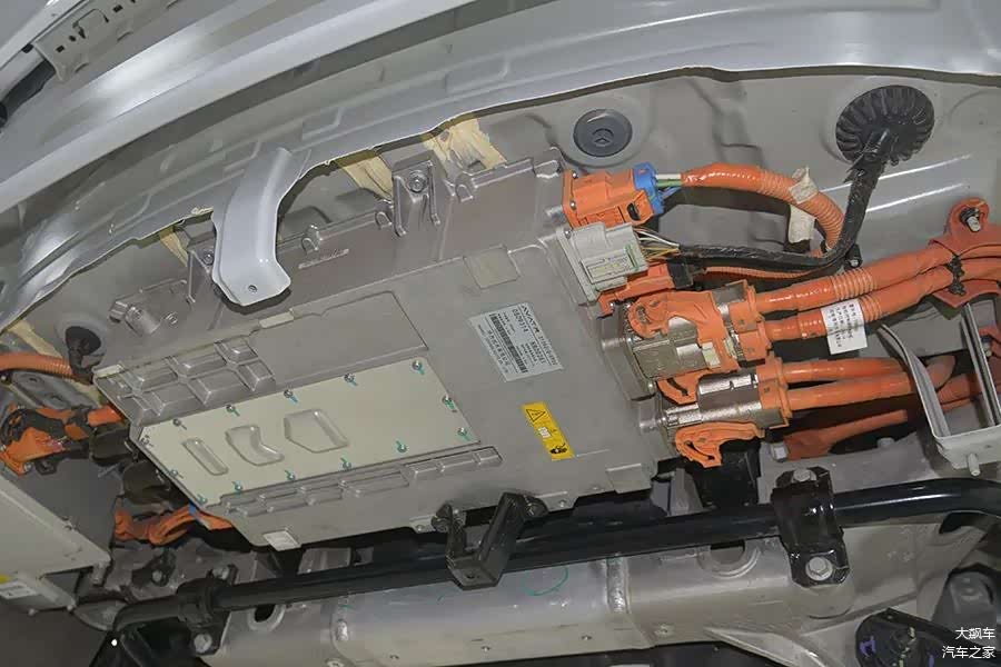 车尾下方安装了多合一DC-DC转换器,采用液冷散热。OBC输出功率9.9千瓦,最高输入电压800V,因此这辆车支持800V高压充电。不过,这么重要的设备放在这个位置,有些危险。如果发生追尾事故或倒车刮伤,设备受伤的概率较高,整车将失去动力,维修费用也不低。