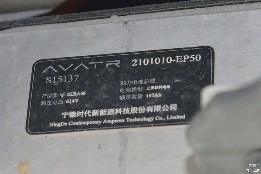 电池组是来自三巨头之一的宁德时代。三元锂电池组,额定电压614V,额定容量147安时,同样支持800V高压平台。