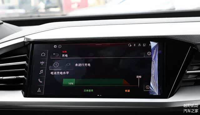 奥迪Q4e-tron车内采用了10.25英寸的全液晶行车电脑屏,以及11.6英寸的虚拟驾驶座舱。车机系统其实很有意思,坐进主驾驶无需任何按键,新车的车机的娱乐系统以及空调系统就会自动进入激活状态,这是奥迪Q4e-tron的舒适就绪功能。当我们离开驾驶位,系统会关闭,舒适度大大提升,而且这款新车没有一键启动,只要上车踩刹车,挂入前进挡就可以驾驶。