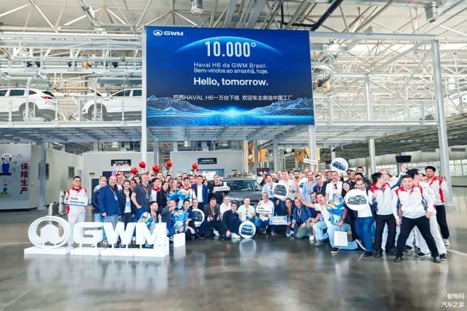 10月24日,在徐水智慧工厂,销往巴西的第10000辆哈弗H6新能源车型正式交付给一拉巴西明星。