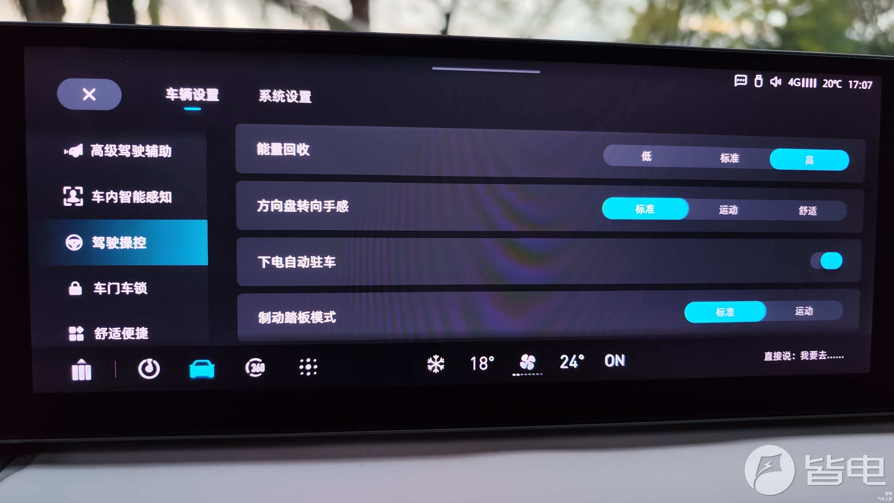 动能回收即使调为高,也不会像特斯拉那样松脚立刻有拖拽感,还是很适合没有开过电车的用户的。