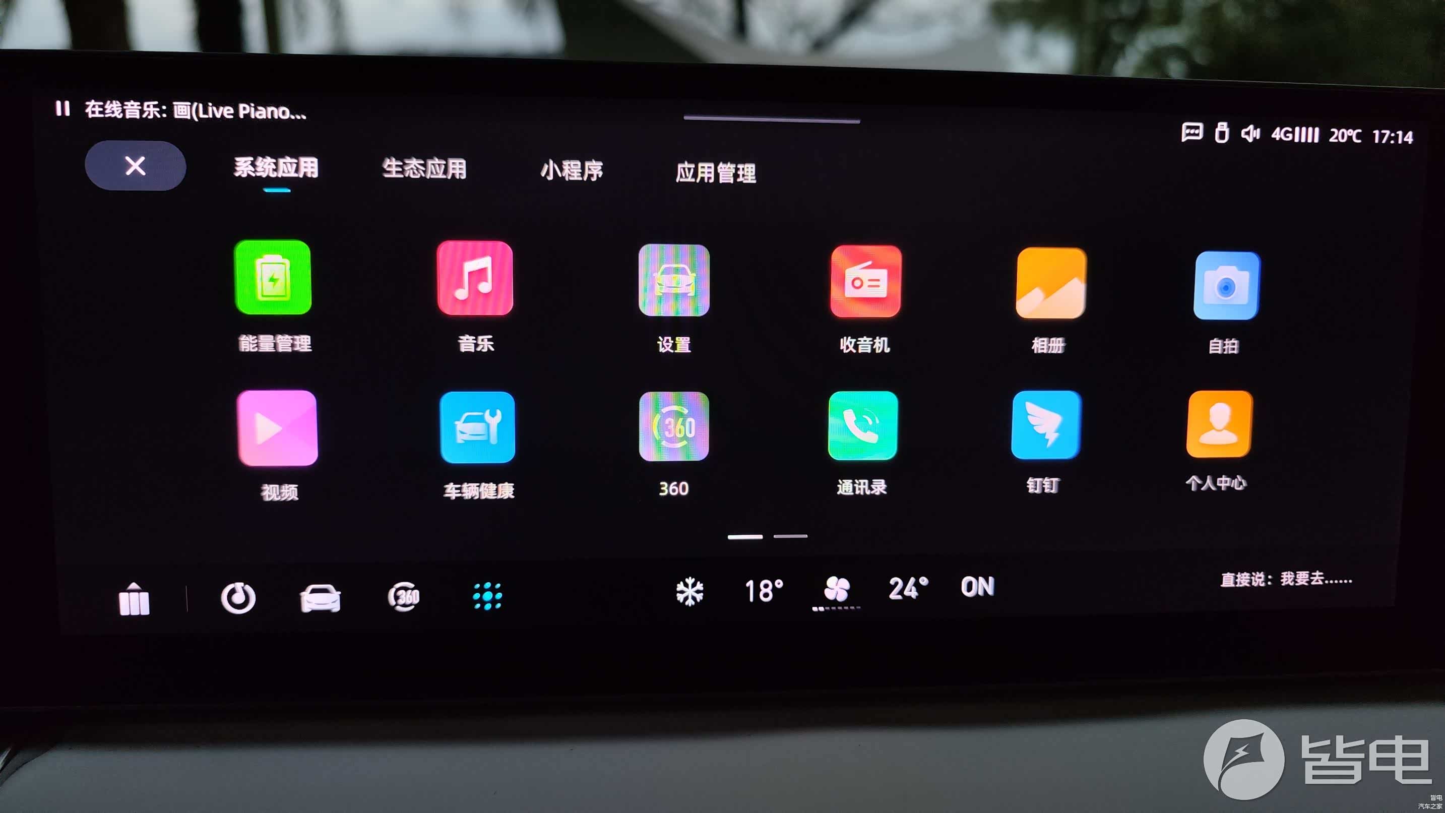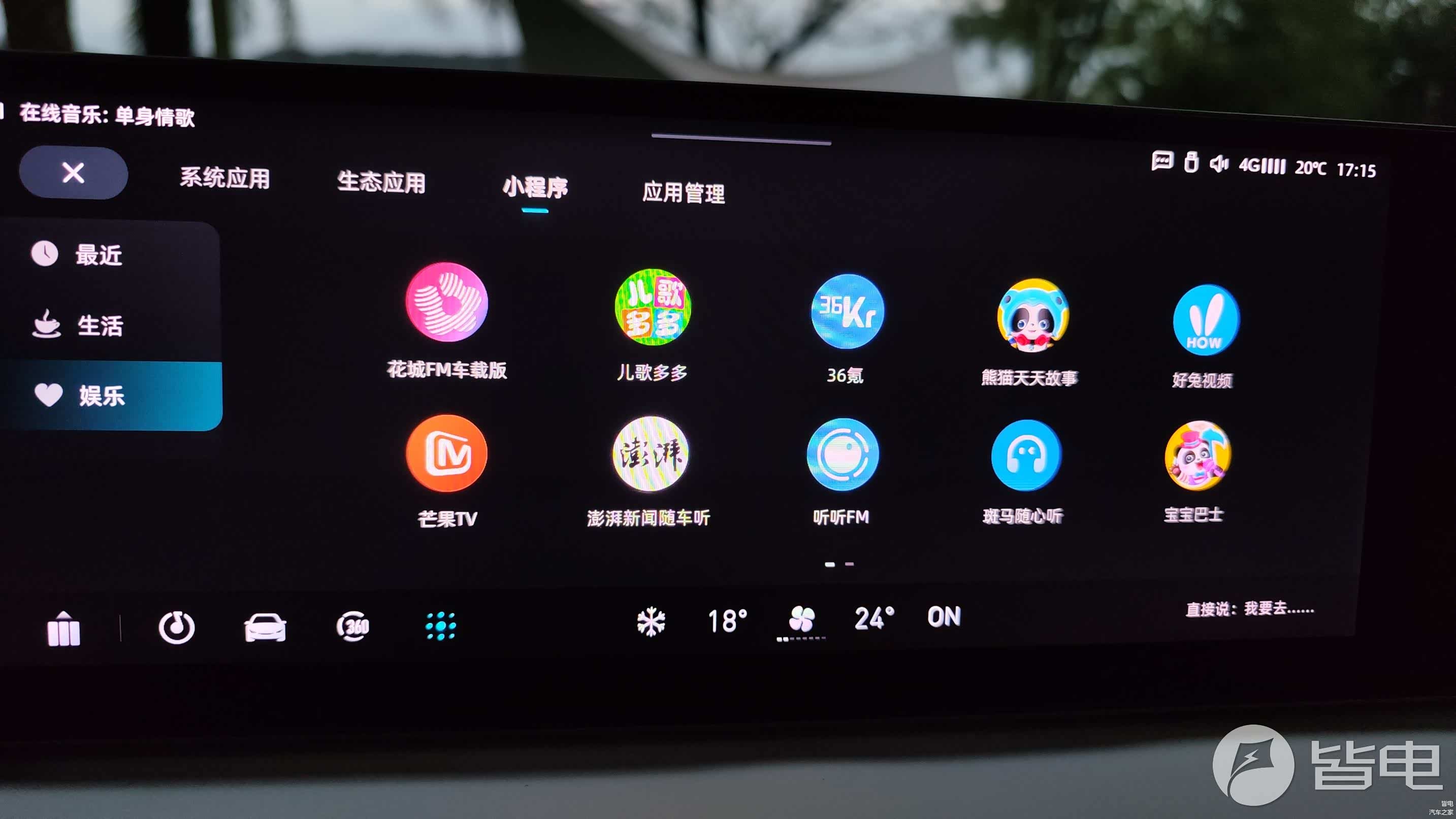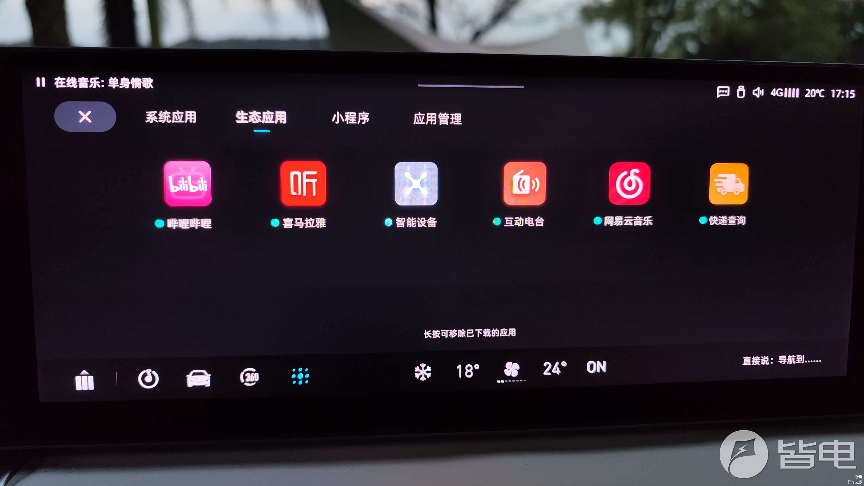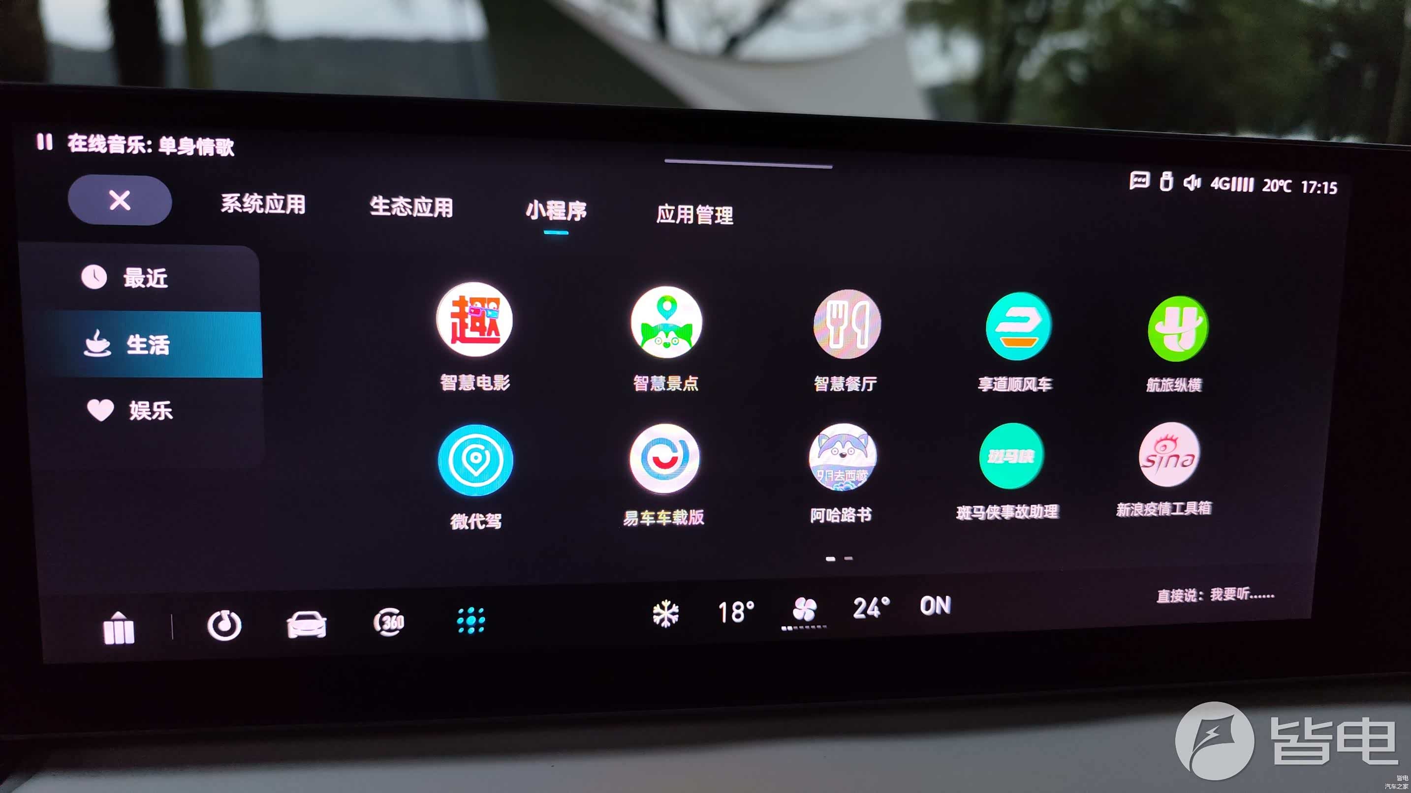 大家7的车机系统是斑马的,地图用的高德地图,带有360影像,音乐软件支持酷我音乐和网易云,视频软件有哔哩哔哩,然后还有各类的小程序,8155的芯片流畅度还是有保障的。
