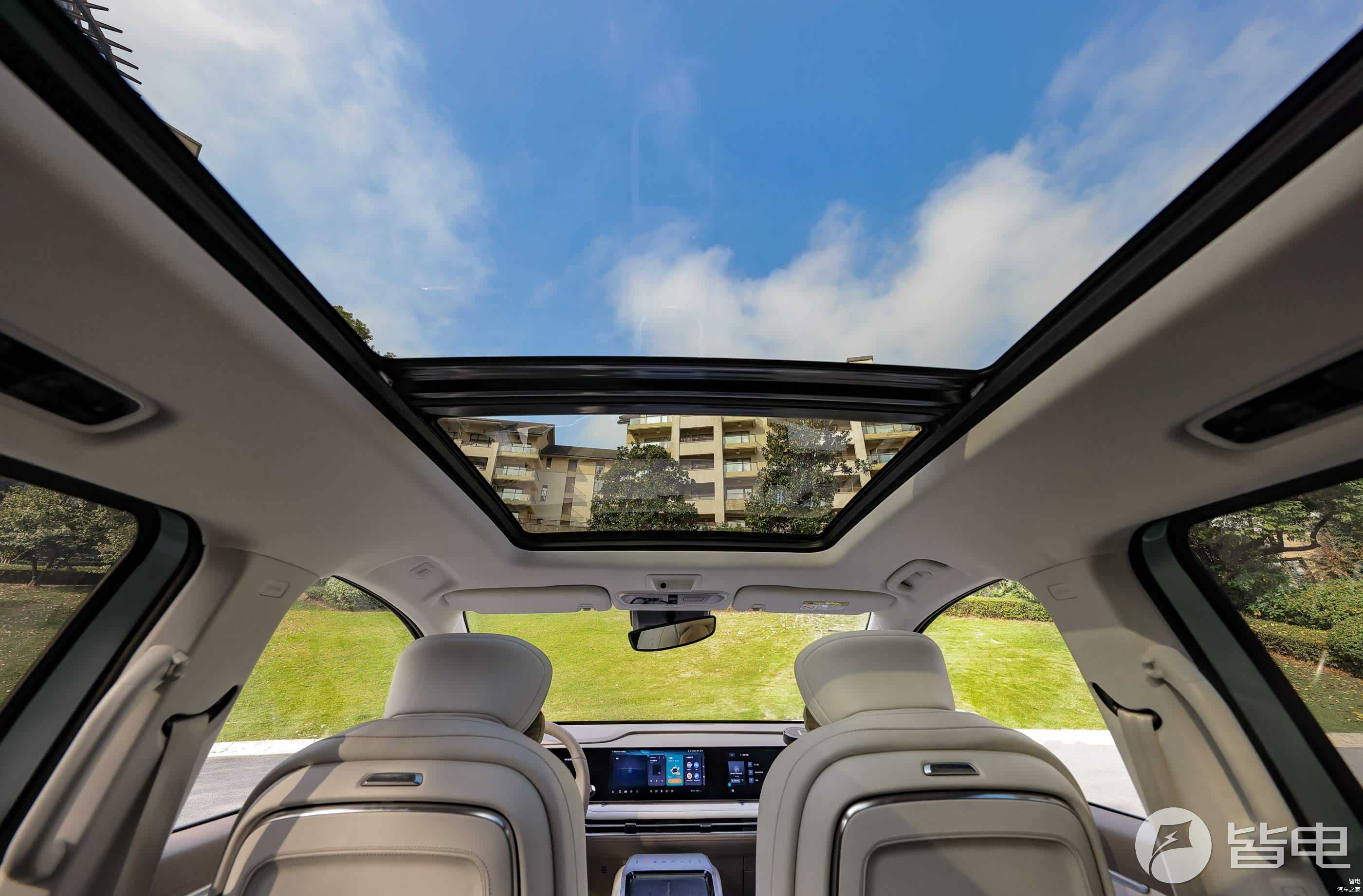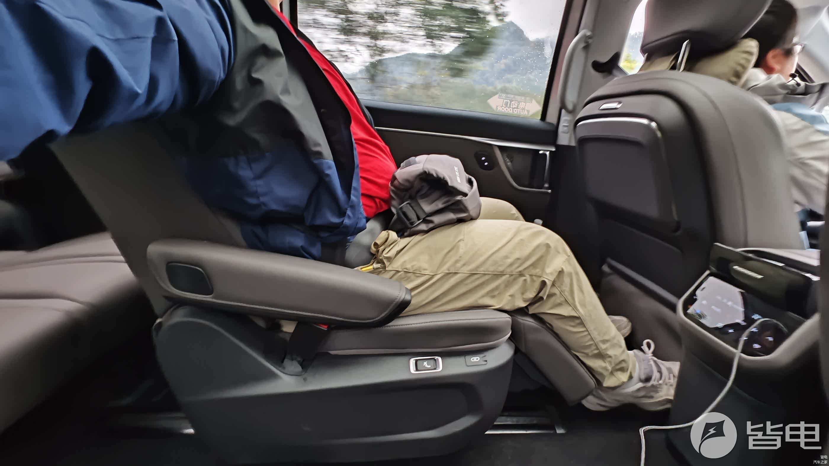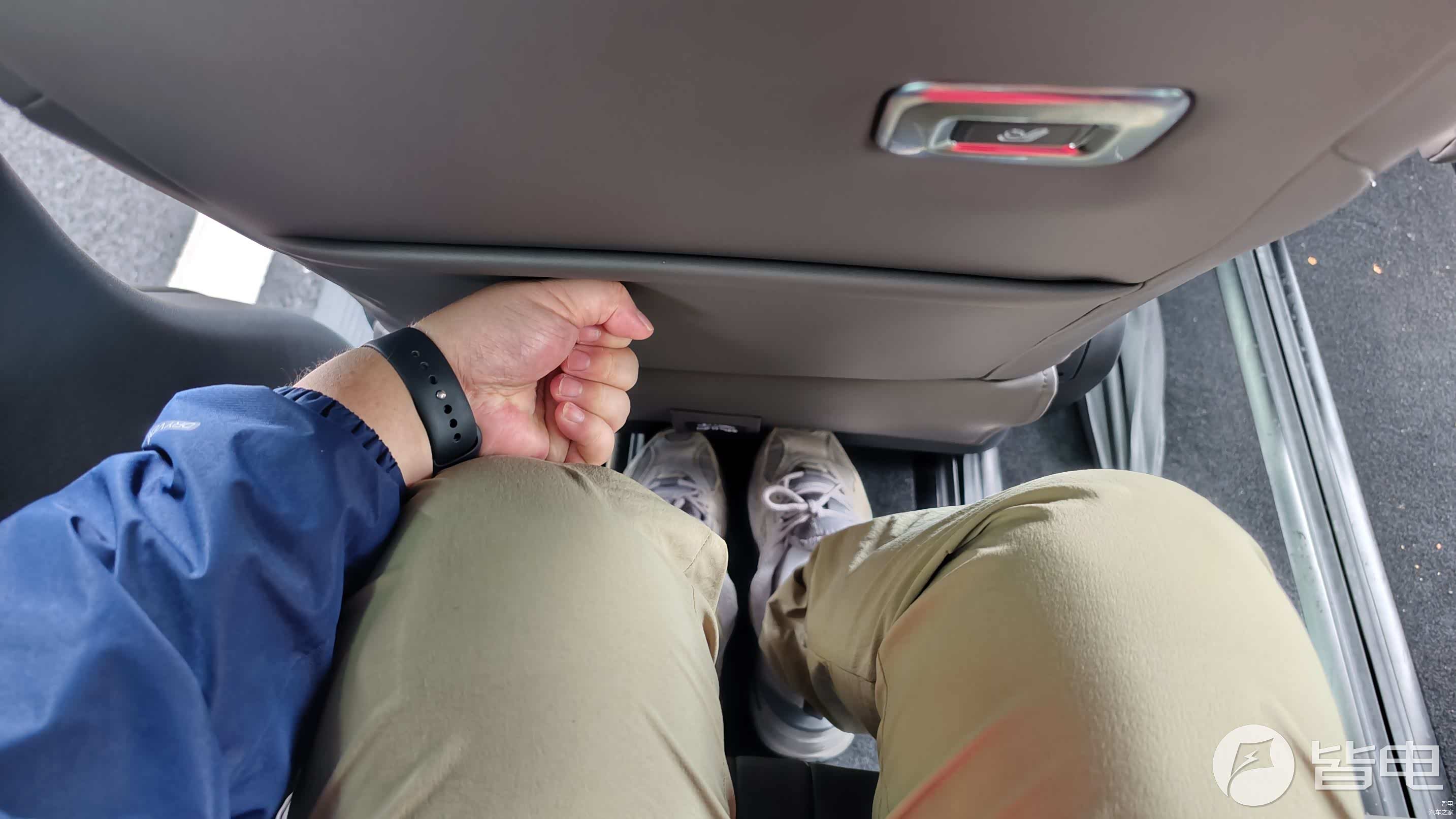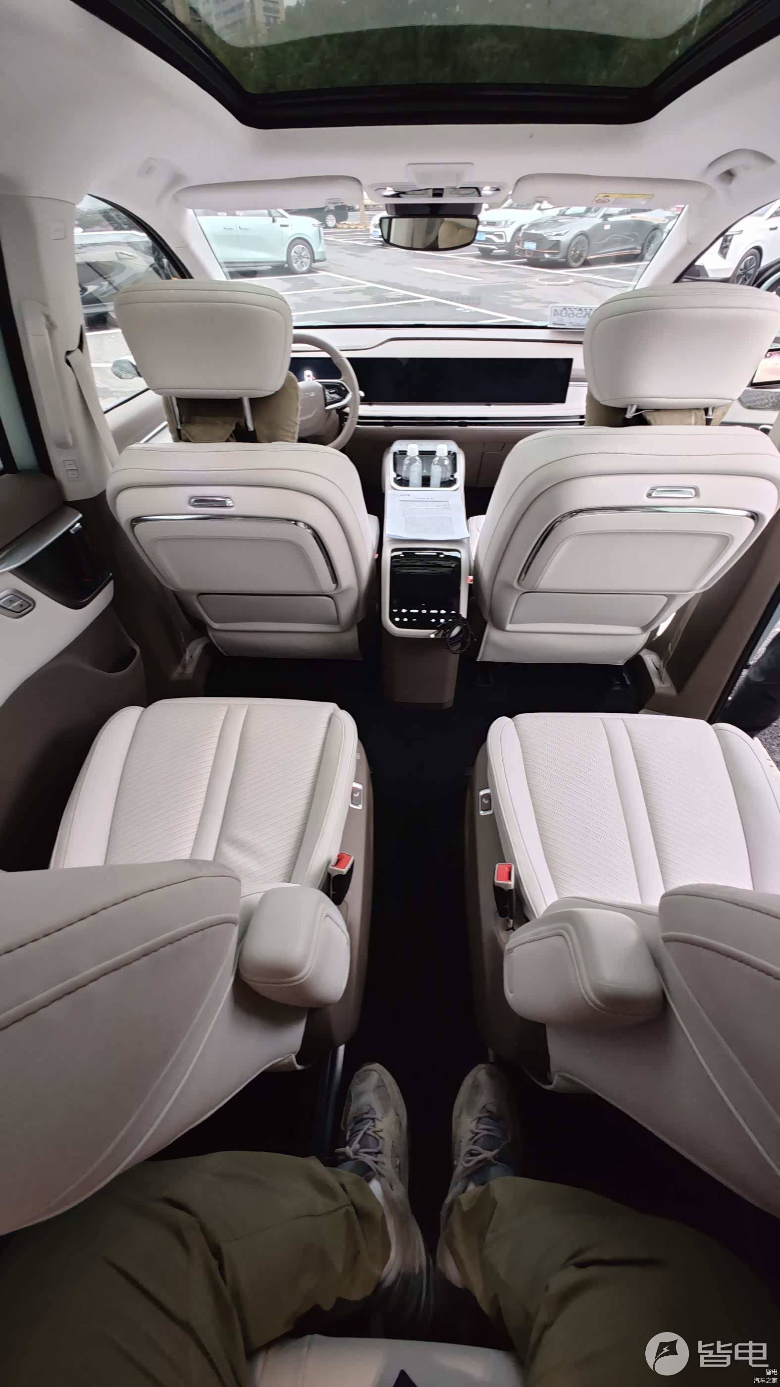 上车后我一开始是试乘,所以我是坐在主驾后面的座椅上,把座椅调到后面打开腿托,躺着真的很舒服,腰部大腿小腿的支撑该有的都有,搭配上甚至可以打开一半的大天窗,车内的采光非常好,因为是6座车型,二排只有我一个人,也显得非常宽敞。