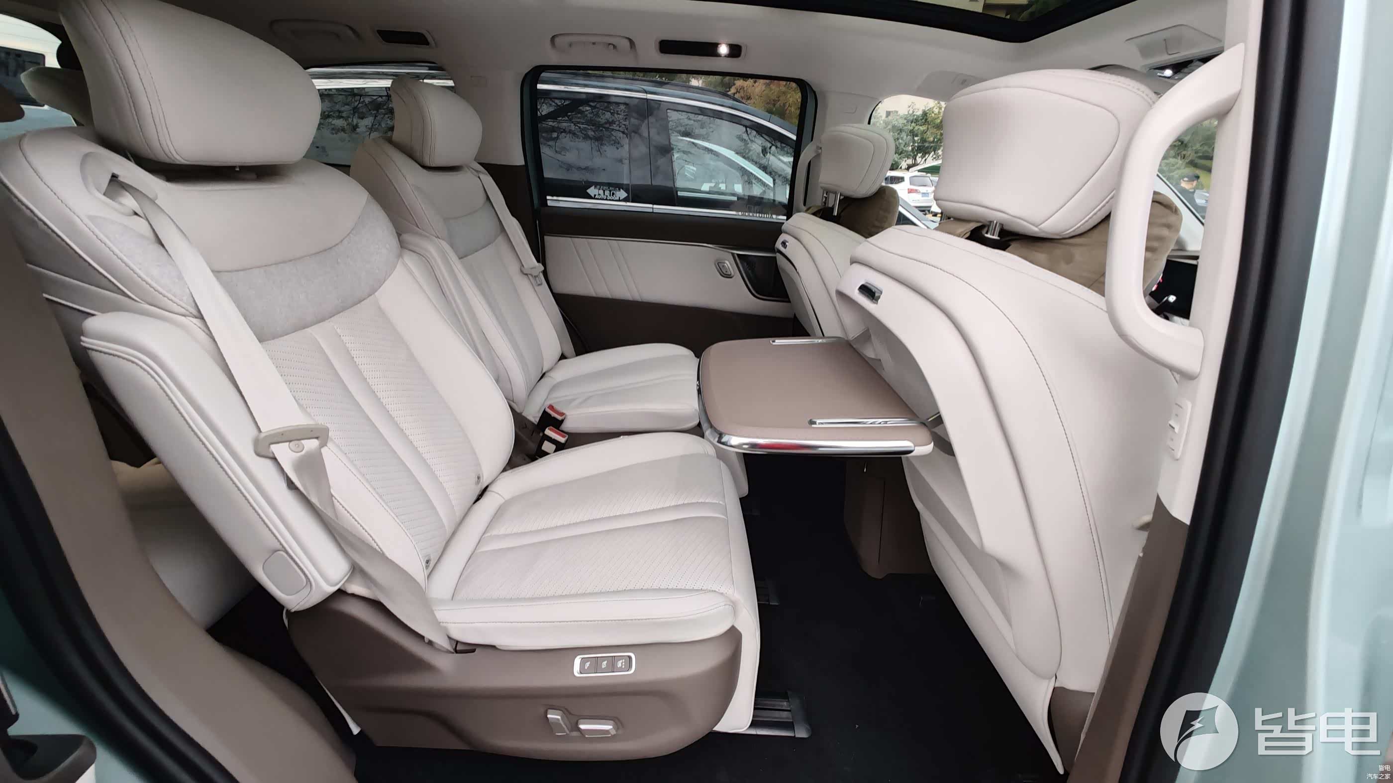 大家7正常是7座布局,二排两个座椅均为电动前后和侧滑,配备加热、腿托功能,并拥有Avenir(艾维亚)同款豪华小桌板带腿托的头等舱式座椅,但是7座车型副驾驶没有腿托这个是我不太理解的。
