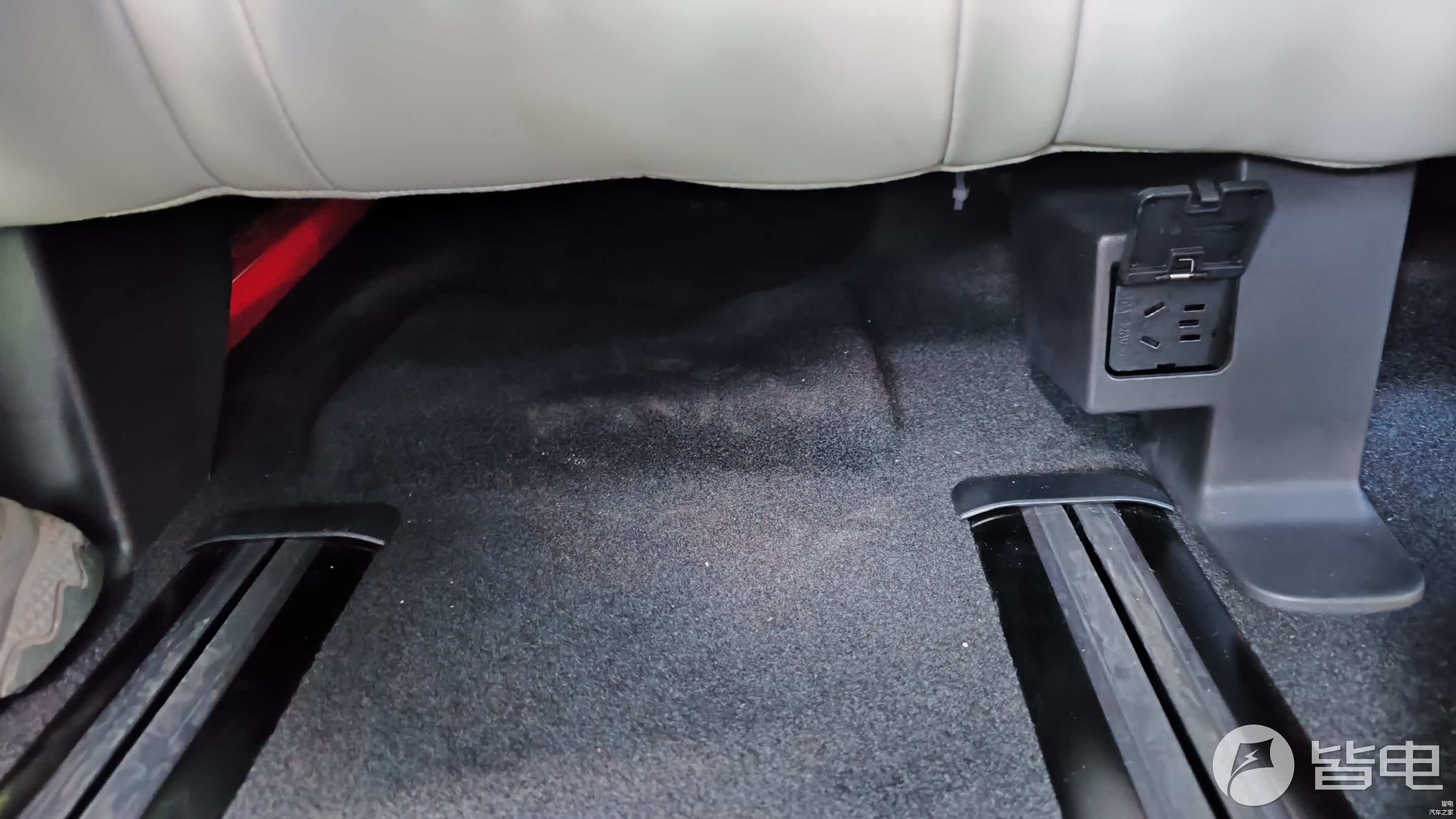 比如一大家人外出露营,6.6KW接一个空气炸锅、火锅、灯、风扇毫无压力,车内第三排座椅下面的插座上的2.2KW内放电在现在游戏本动不动大几百瓦的功率下也是游刃有余,哪怕车外突然下雨,在车内给自己的孩子用吹风机吹个头发也不在话下,个人觉得还是非常实用的。