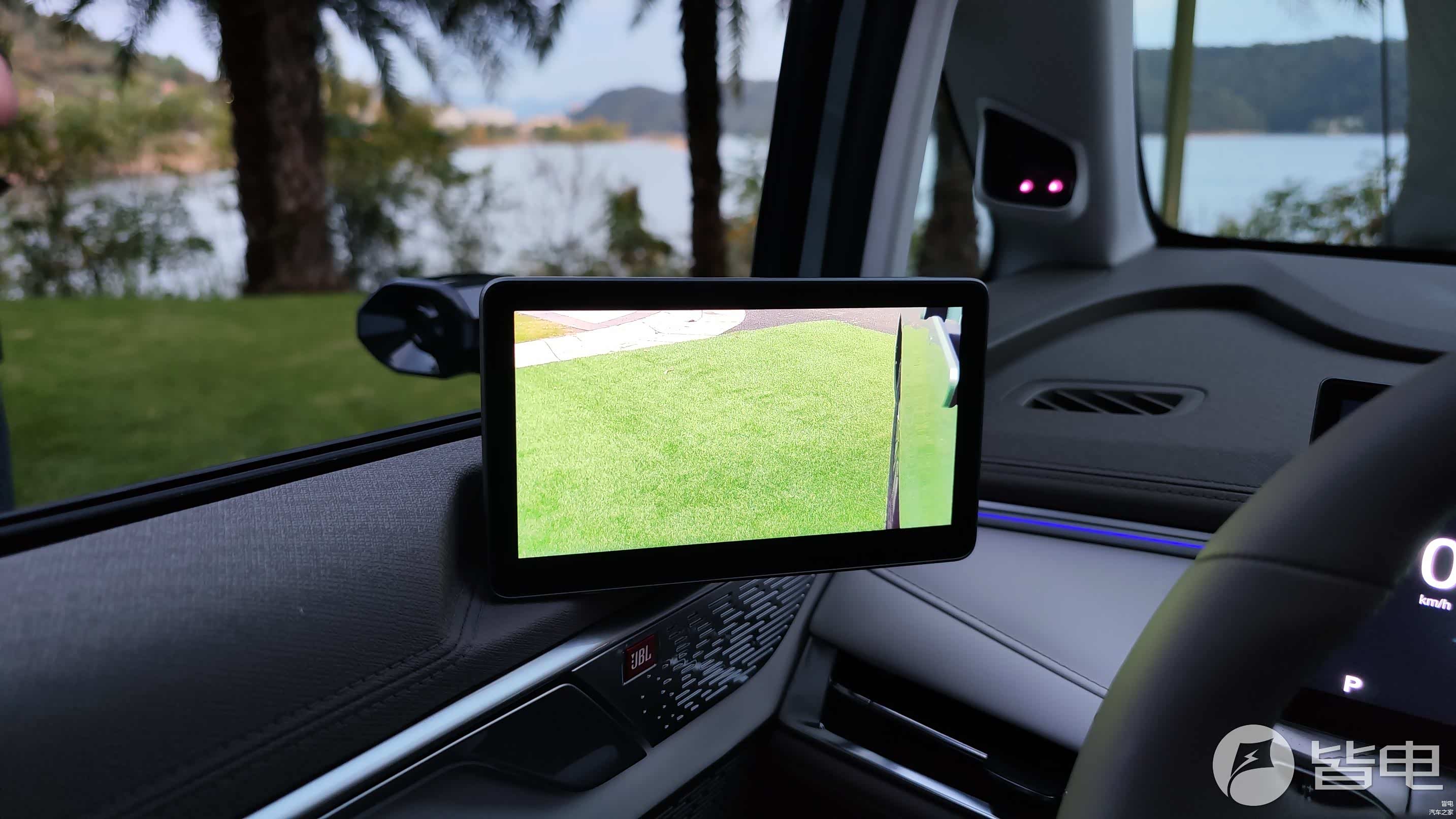 在打转向灯的时候,电子外后视镜是会自己缩放角度,让你能够看到正常后视镜得往前够一下才能看到的盲区视野,然后倒车的时候还会自动给下方盲区视野,这就真的非常人性化了。
