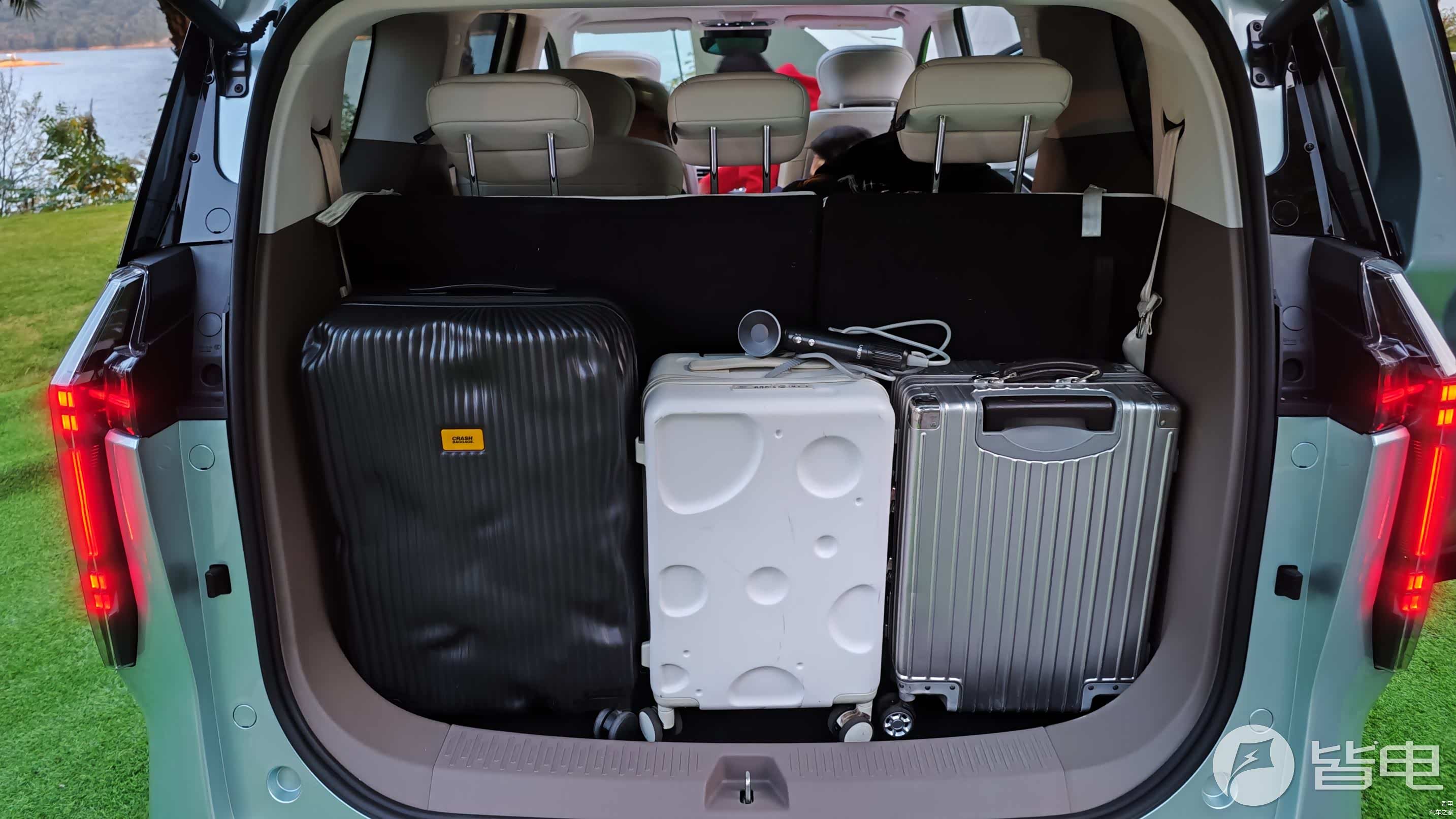在满员情况下,行李箱空间可同时容纳1个28寸+2个20寸放置。