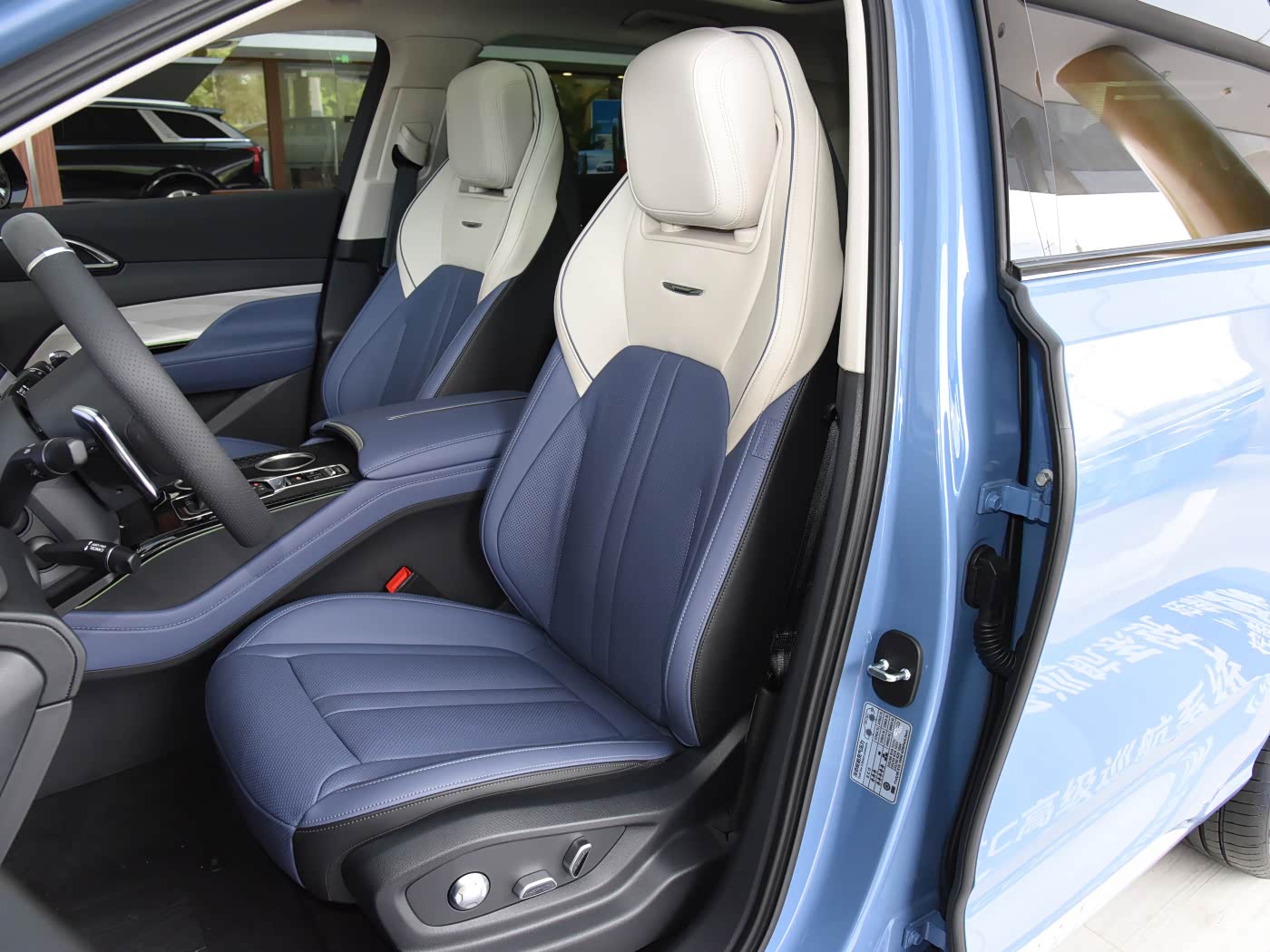依然是熟悉的T字型仪表台,以12.6英寸中控屏+扶手箱为中心对称轴,像幕布一般朝两侧徐徐展开,传统的物理按键被大屏下方的doc栏所取代;但无论是包裹较强的桶式座椅、门板上的多种材料还是整车环绕的内饰氛围灯,都在通过时尚的色彩来为车主提供愉悦感。