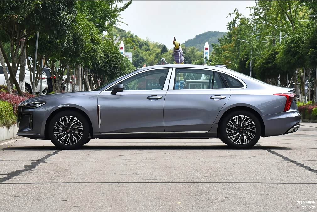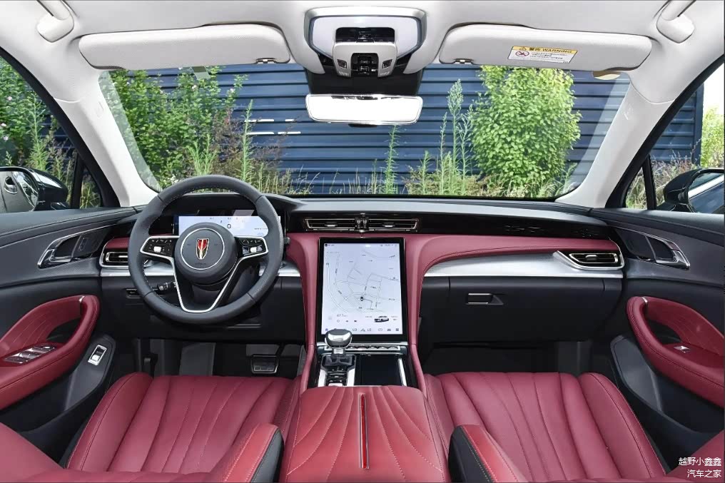 尺寸方面,长宽高分别为,4988*1875*1470mm,轴距为2920mm,车内中控台区域搭载了三辐式多功能方向盘、12.3英寸液晶仪表盘和12.6英寸竖向布局的中控屏,内置红旗智联3.0Plus车载系统,具备车联网、道路救援服务、连续性语音识别等功能,在中控下方保留了大量实体空调按键和电子换挡机构,操作起来很是方便。