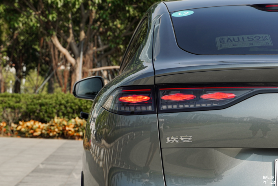 车尾采用溜背式设计,带有微微上扬的小鸭尾,配合上六星连珠的尾灯设计,点亮后十分精致、饱满,相当有辨识度。