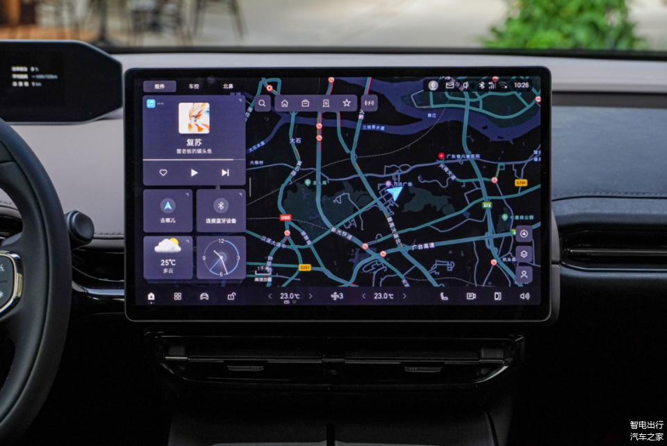 仪表盘被放置在更靠挡风玻璃的位置,这样的好处是驾驶员开车时视线不用大幅度切换,效果和HUD抬头显示类似,而且这块仪表盘的屏幕清晰度很高,信息显示也相当齐全,观感不错。