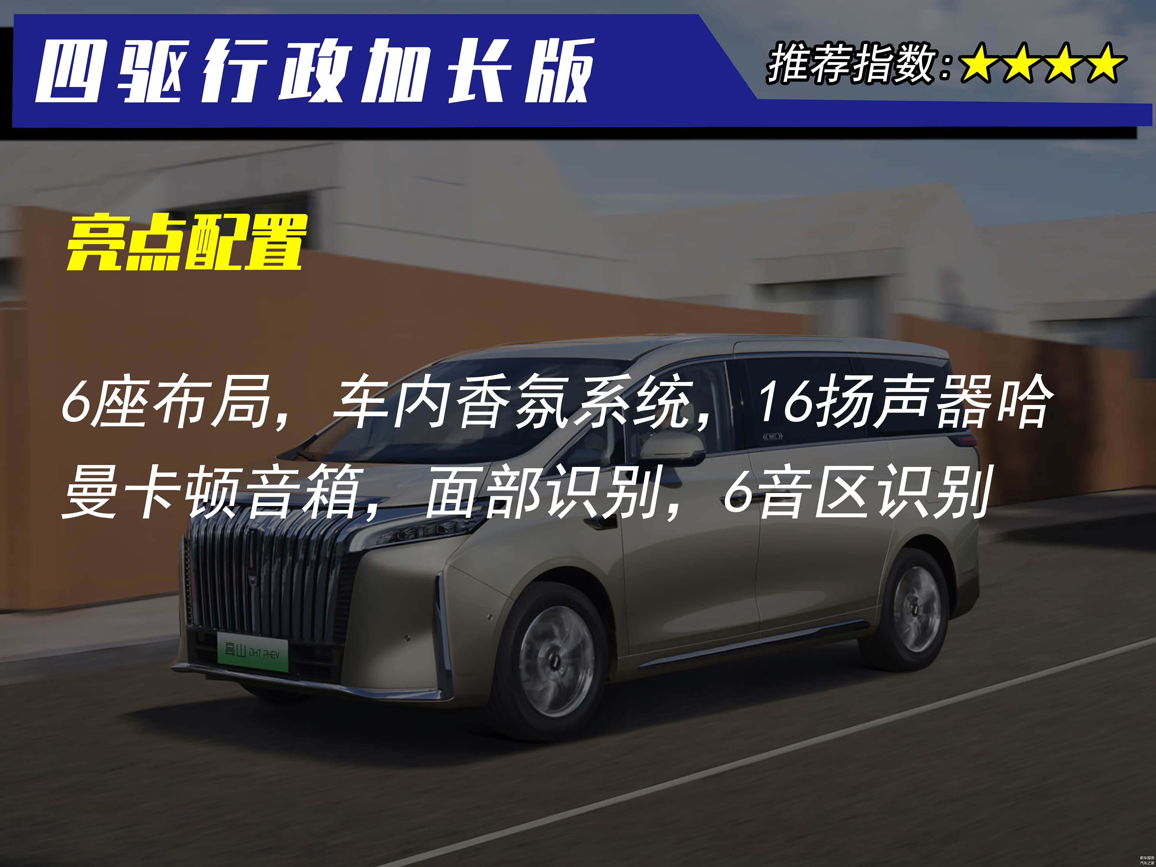 总的来说魏牌高山是一款表现非常均衡全面的车型,无论是作为家用还是商务接待都是非常合适的。那么魏牌高山的哪款配置车型更值得推荐呢?目前在售的配置车型共有三款,分别是四驱尊贵版、四驱旗舰版以及四驱行政加长版。此外还有一款共创版车型还没有正式上市,就不在今天讨论的范围了。