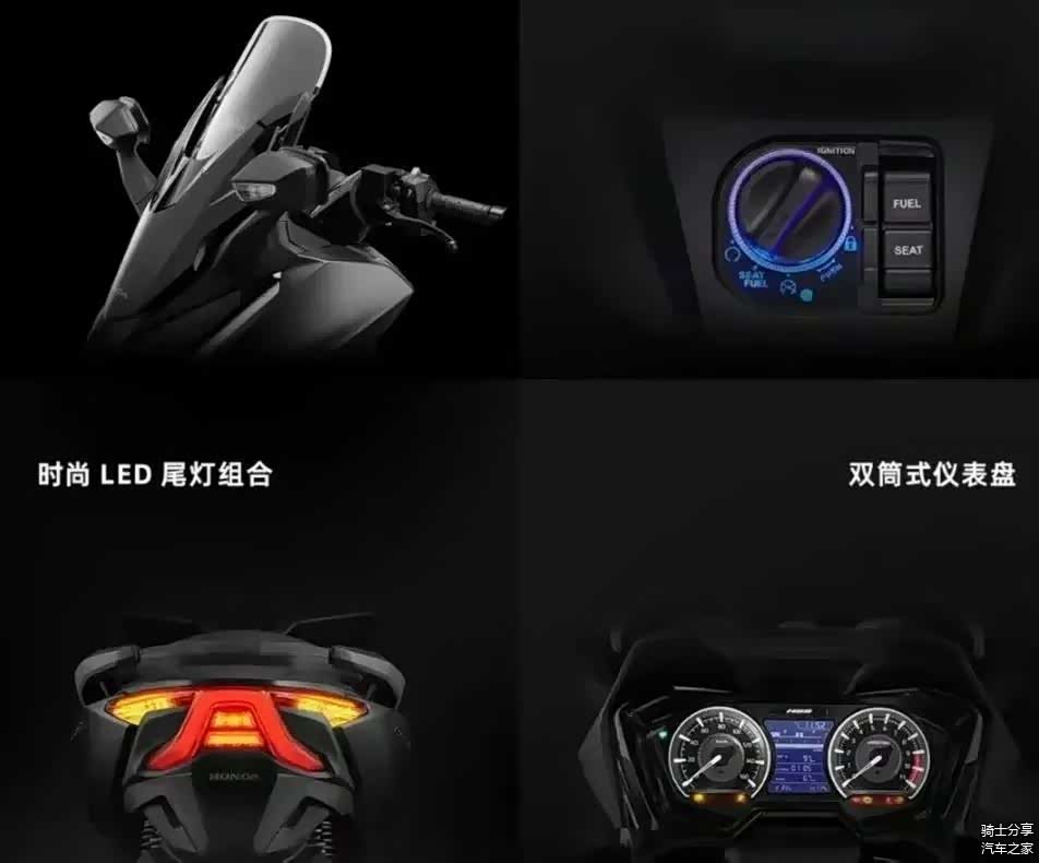 就自身表现来看,NSS350外观虽然不够激进但也比较大气,性能表现也会有比较均衡的一面,毕竟他所搭载的是本田比较先进的ESP单缸水冷四气门引擎,这款发动机最大功率21.6KW,最大扭矩31.8N·m。