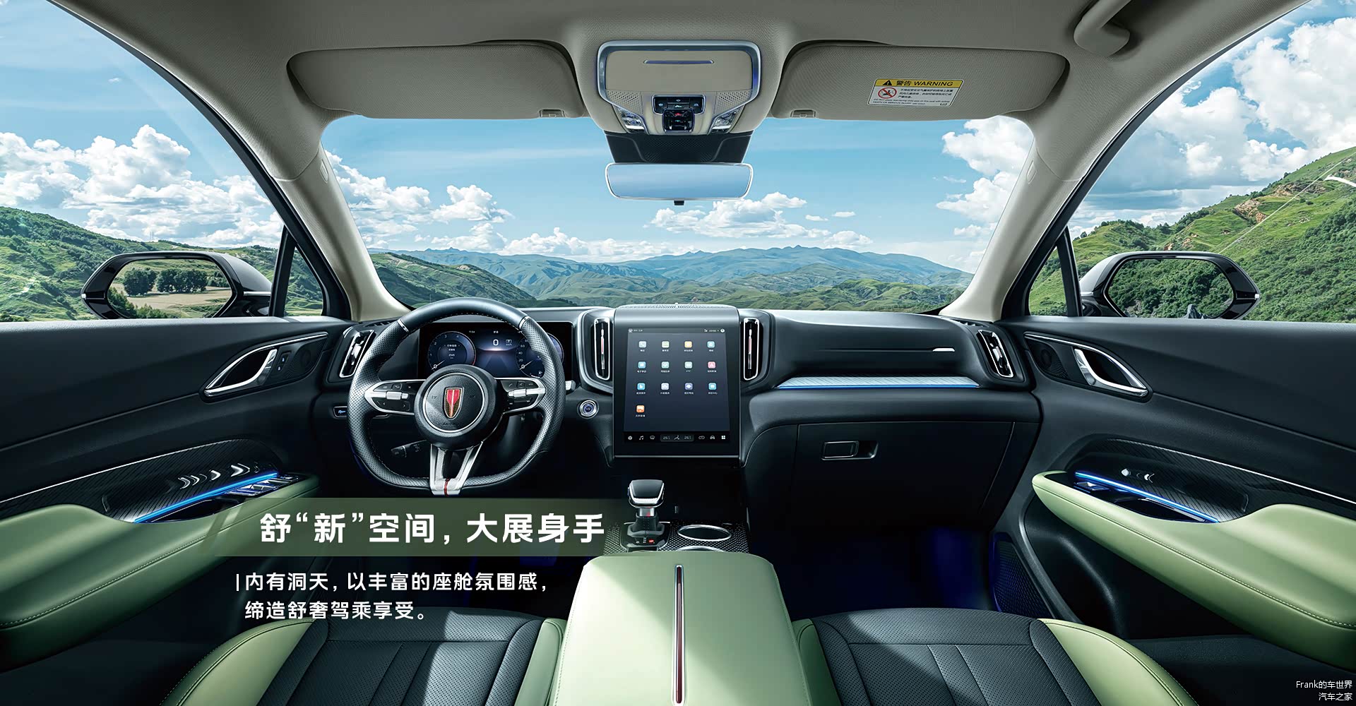 红旗HS3采用经典的环抱式座舱设计,配备12.3英寸全液晶仪表和12.6英寸中控大屏,彰显科技感。为了迎合年轻人的使用习惯,采用一体式双辐条设计座椅,支持头枕调节,突出运动属性而又个性十足。车内实体按键很少,符合年轻人的使用习惯。车门内侧靠近车窗按键的位置增加了氛围灯,营造出强烈的运动氛围,契合年轻人张扬又富有内涵的产品定位。