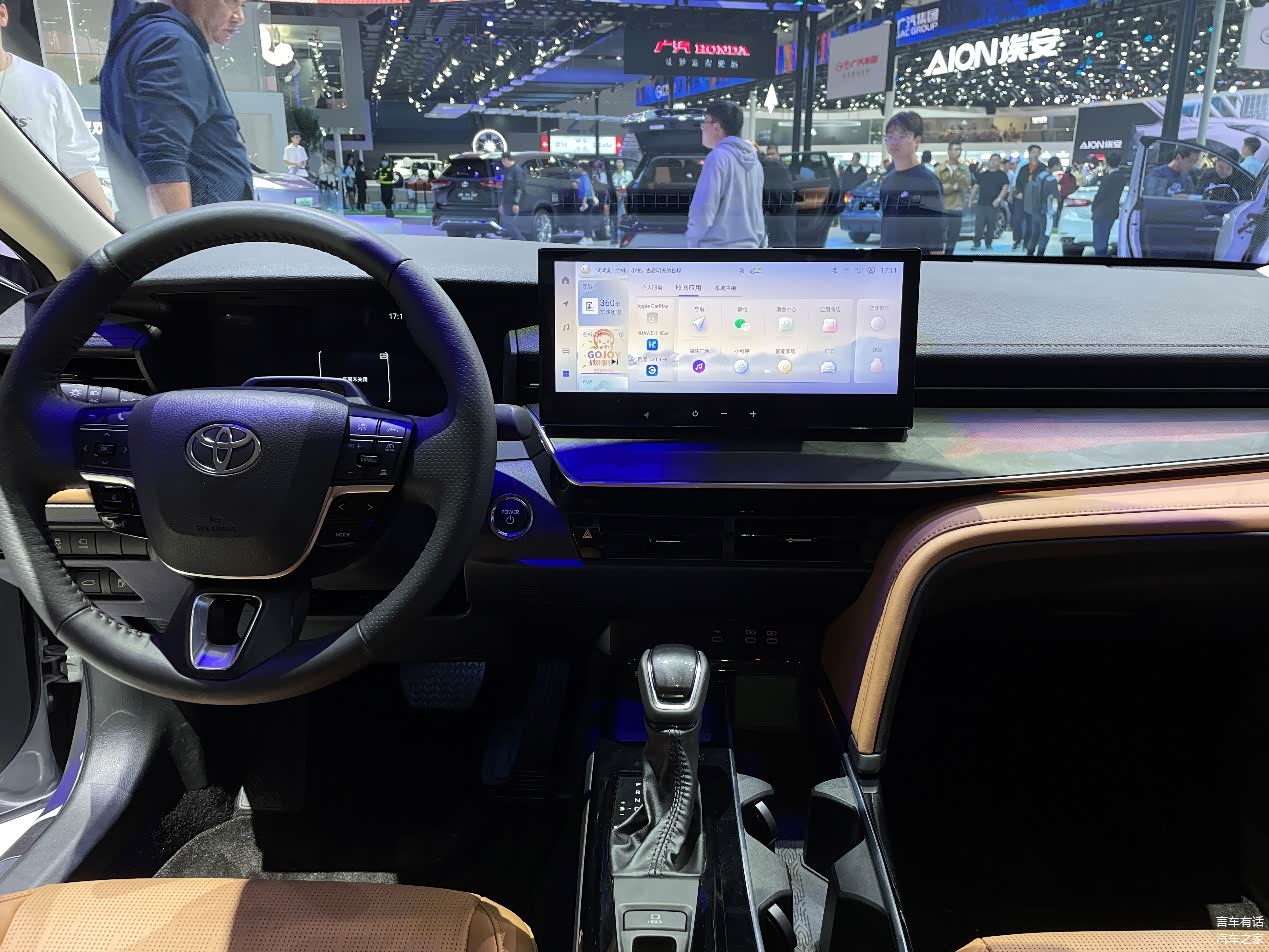 内饰是本次第九代凯美瑞最大的升级点,与此前北美亮相的车型差别很大,变得更为简洁。同时也取消了第八代凯美瑞的Y字型设计。中控屏首次采用了8155芯片,并且搭载与华为合作的车机系统,流畅度和功能相比第八代凯美瑞的“古董”车机还是有了明显提升,空调的控制面板也变成了触屏设计。此外,第九代凯美瑞采用12.3英寸的嵌入式液晶仪表盘,还调整了仪表盘的仰角幅度,增强了视觉协调度。在细节方面,第九代凯美瑞还会搭载JBL音箱、前排双层隔音玻璃、64色多色智能氛围灯等。