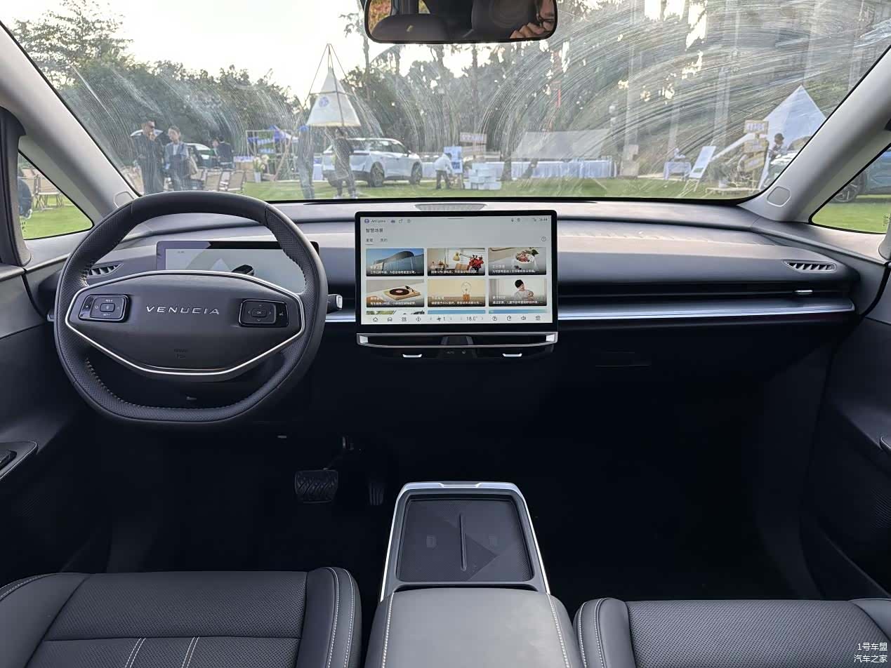 具体来说,启辰VX6的座舱设计,其实就是时下多数新能源汽车都在使用的简约路线,将绝大多数实体按钮集成到了14.6英寸的液晶仪表当中,10.25英寸的液晶仪表用以显示一些基本的参数,再者就是一个双幅式的多功能方向盘,面料方面以皮质包覆为主,在这个价位区间内属于正常水平。