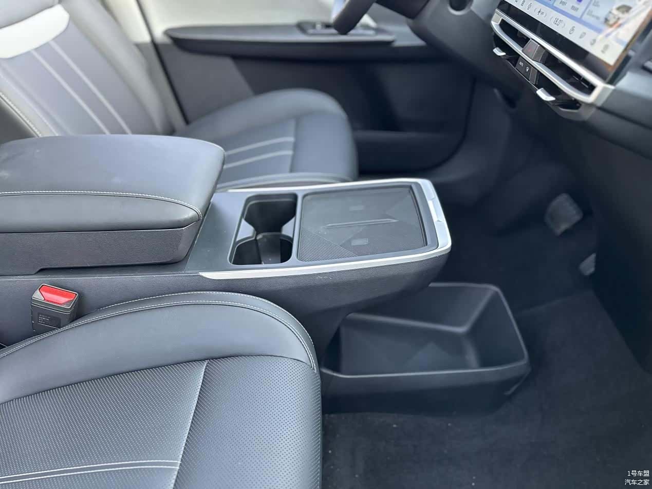前排主副驾驶之间也被设计成了贯通的,并匹配有相应的储物区域。