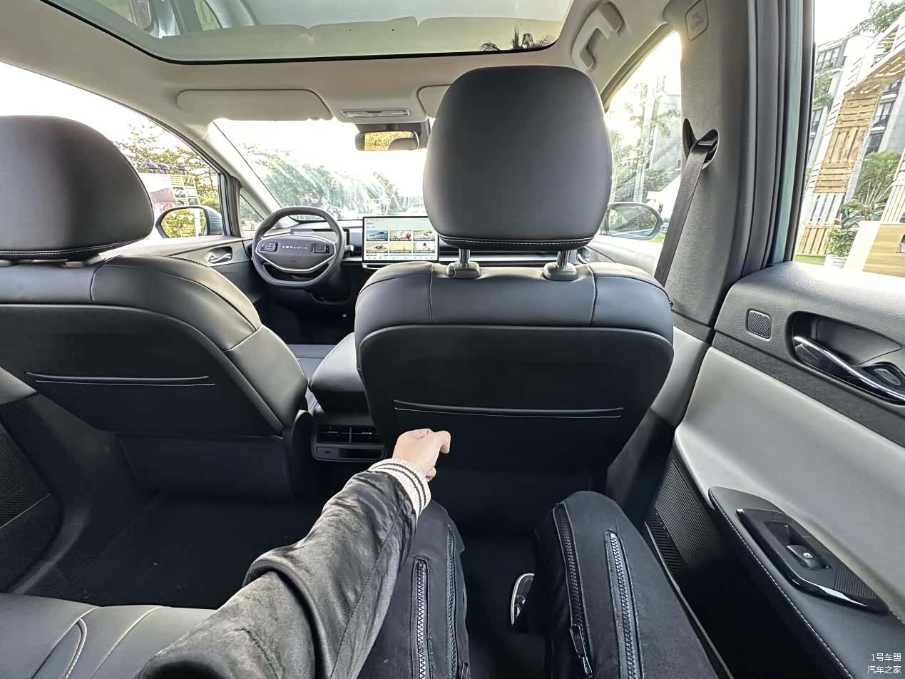 不过在座舱设计与主流同类型汽车保持一致的同时,启辰VX6的座舱空间表现倒是让我大吃一惊。得益于2850mm的轴距,启辰VX6在前排座椅靠背已经与B柱末端齐平的同时,后排正常坐姿情况下(笔者身高173cm),腿部依旧有着2拳的空间富余。