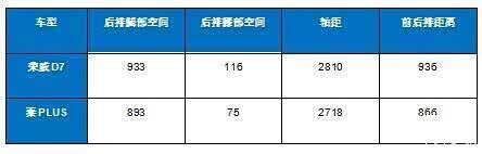 在车内后排空间方面:荣威D7的腿部空间为933mm、膝部空间为116mm,而秦PLUS的腿部空间为893mm、膝部空间为75mm,要明显小很多。