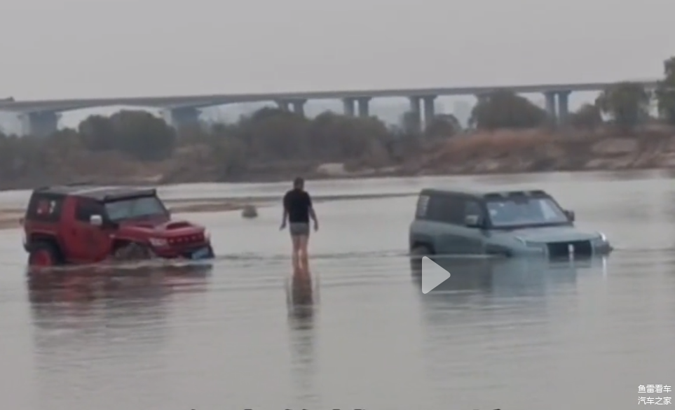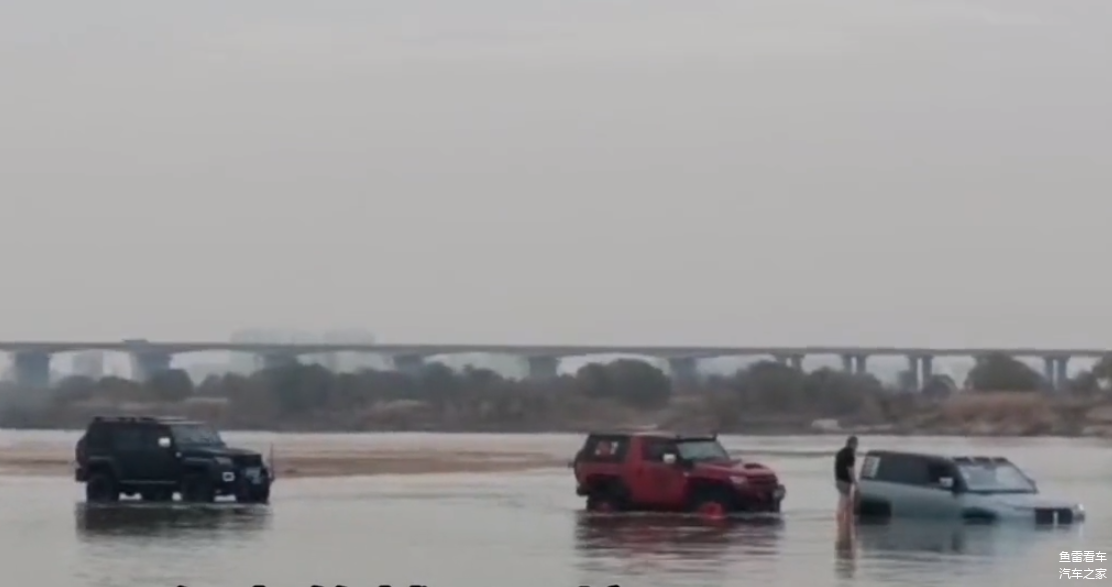 视频一开始就能看到右侧有一台仰望U8深陷在水中,而左侧则是一台赶来救援的BJ40改装车,原装轮眉被撤掉,取而代之的是改装的轮眉,大脚自然也不是原装的,即使BJ40有官方改装版,譬如雨林穿越版,轮眉和避震的改装与此次视频中的BJ40接近,但是轮胎尺寸达不到视频里的尺寸规格。
