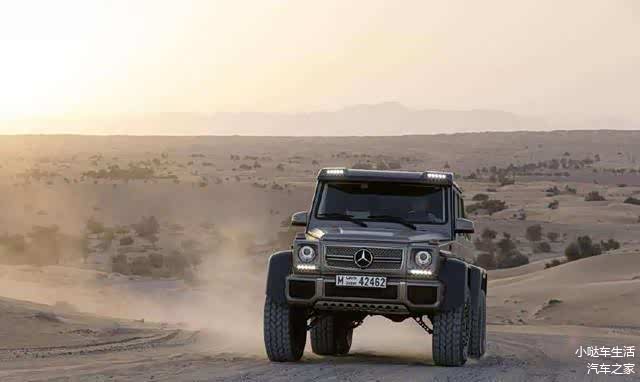 得益于六轮驱动和全门桥构架,G63AMG6×6可以说是顶级豪华越野车了。在动力方面,5.5LV8双涡轮增压发动机可以爆发出543Ps的最大功率和760Nm的峰值扭矩,与其匹配的是7G-TRONIC自动变速器;在越野性能方面,G63AMG6×6配备了大量的越野功能及套件;在整备质量方面,G63AMG6×6体重高达3850kg。