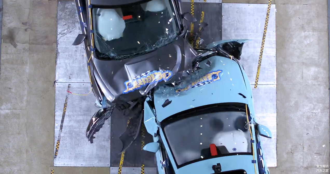 回到碰撞测试上,本次测试的媒体采用时速50km/h两车对向50%的偏置碰撞。从对比结果来看,朗逸新锐A柱表现完好,并没有明显的车身变形,溃缩区也是起到应有的吸能作用,而且主驾驶一侧的车门也可以正常打开。同时车内的前排主副驾驶气囊、侧气帘也都正常弹开。轩逸经典溃缩区吸能正常,不过A柱有明显的变形,有比较多的褶皱。同时轮胎向后位移比较多,导致主驾驶一侧的车门无法正常打开。抛出测试结果来看,朗逸新锐顶配的整车质量为1250kg,轩逸经典为1230kg,如果站在能力守恒的角度,重的一方在碰撞时会占据优势。话说如此,朗逸新锐在重量占优的情况下还是选择了两车对向50%的偏置碰撞,一方面可以知道朗逸新锐为了本次碰撞测试做了大量资料调研,另一个方面说明了轩逸经典50%偏主驾侧的车身刚性最为脆弱。