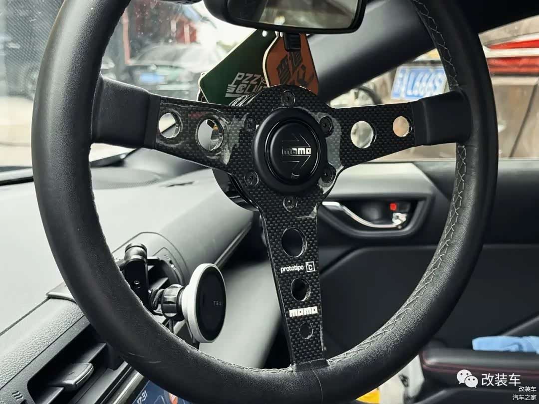"内饰方面,换上了MOMO 6C碳纤维方向盘+NRG快拆、RECARO RS-G座椅、DEFI油压表、Megician液晶表,内饰充满战斗的同时还有着哈曼卡顿中音+JBL钛膜高音用来享受生活。"