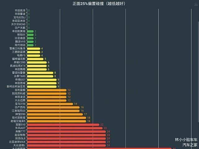 图注:正面25%偏置碰撞测试排名(排名车型限于中保养测试过的车型)