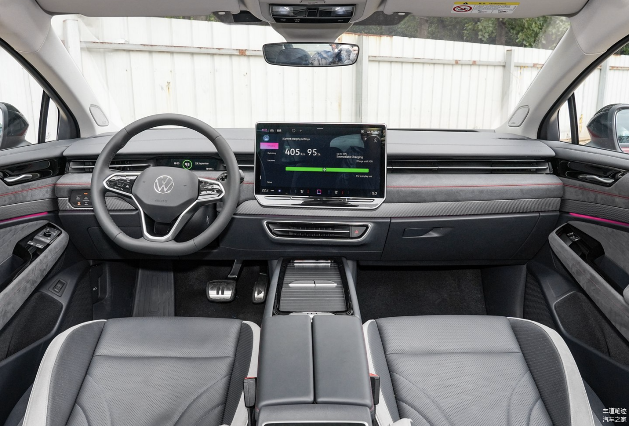 从内饰来看,ID.7 VIZZION采用了极简的设计理念,以白色和黑色为主色调,营造出一种高雅的氛围。车内的配置也十分丰富,除了前面提到的AR-HUD增强现实抬头显示系统,还有15英寸智能2K悬浮屏、Smart Air隐藏式智能空调、Travel Assist 3.0智能驾驶辅助系统等等,让驾驶员和乘客享受到智能化、数字化、网络化的驾乘体验。