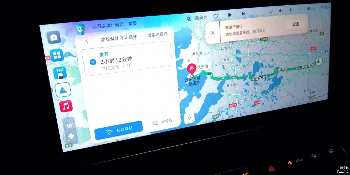 我们将行程时间控制在2个小时10分左右,并且这一路的行程有高速,同时也有城市路段,但电池并没有完全馈电,在出发时,电池的续航里程为105公里。