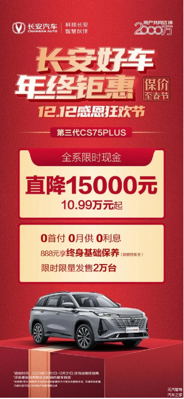长安第三代CS75 PLUS车系,现金直降15000元,抄底一口价10.99万元起(原市场指导价11.79万起);2023款 UNI-V车系,现金至高直降15000,抄底一口价9.89万元起(原市场指导价11.69万元起);长安欧尚Z6智电iDD车系,现金至高直降30000元,抄底一口价12.98万元起(原市场指导价15.58万元起);长安欧尚Z6车系,现金至高直降15000元,抄底一口价8.99万元起(原市场指导价9.99万元起);长安欧尚X5 PLUS车系,现金至高直降20000元,抄底一口价7.19万元起(原市场指导价8.89万元起)。