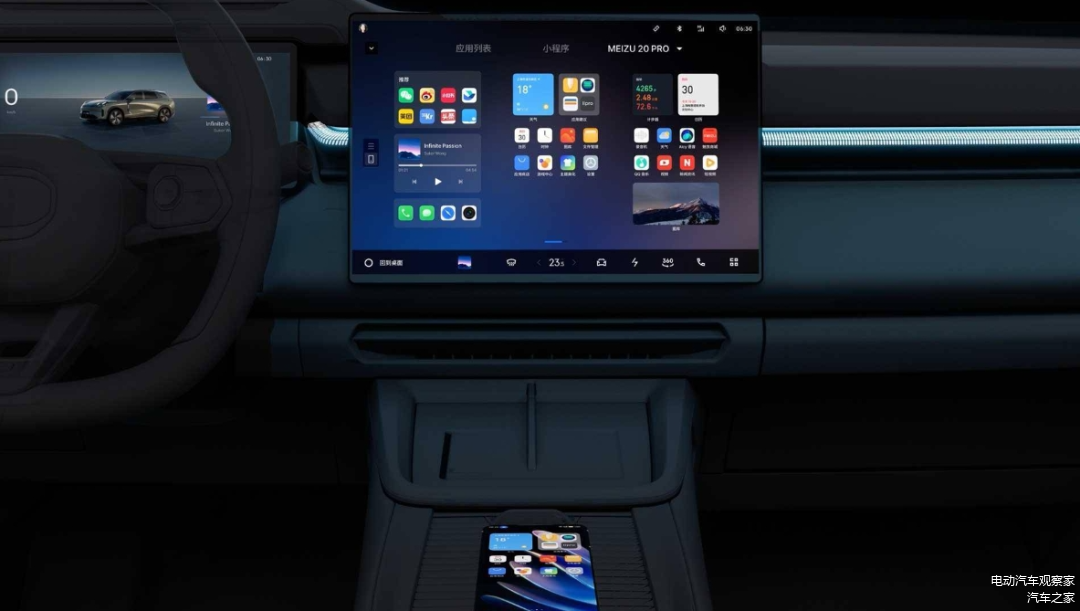 另外一套来自魅族,吉利在去年收购魅族手机之后,基于亿咖通的硬件和底层软件,开发了Flyme Auto车机操作系统,意图打通手机端和车机端的体验,形成智能移动设备(包括手机和车辆本身)之间的紧密生态,也就是此前安聪慧所提到的汽车第6域“手机域”的概念。