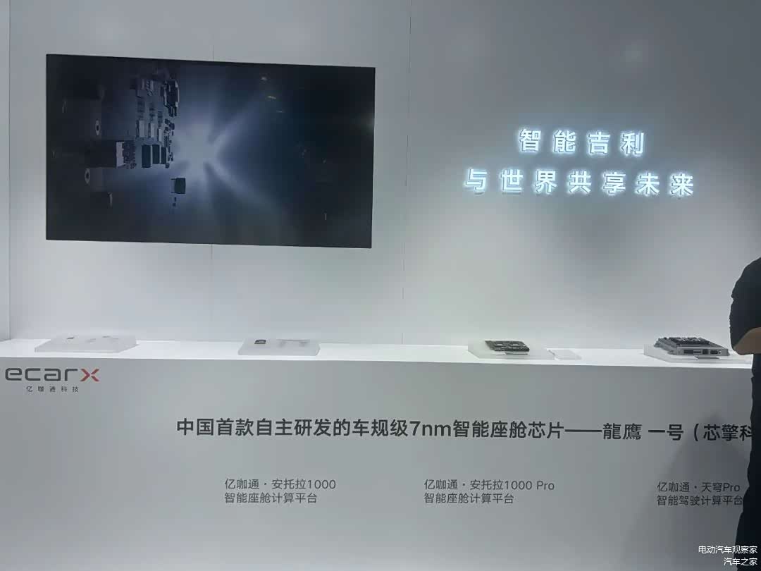 在这次展会上,亿咖通带来了三款产品,分别是智能座舱计算平台安托拉1000及安托拉1000 Pro,其中后者已经搭载在了领克08上。还有一款智能驾驶计算平台天穹Pro,综合算力116 TOPS,支持行泊一体方案。