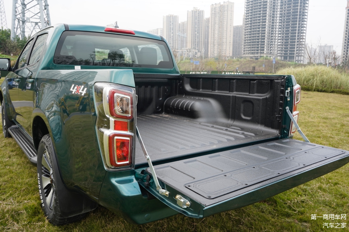 该车货箱尺寸为1495mm×1530mm×502mm,货箱内表面带有防刮涂层,并带有多个锚点,可用于捆绑货物;尾灯采用“战斗机喷气口”造型,辨识度很高;此外,该车还拥有优秀的接近角、离去角,为其提供了良好的越野基础。