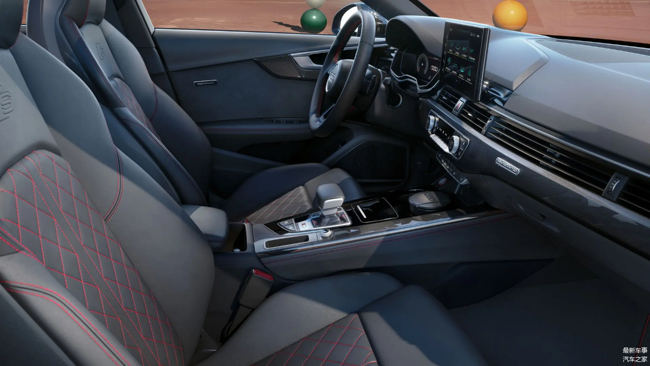 内饰方面,奥迪S4家族的驾驶舱设计基于A4L升级版,更换为带有“S”标志的三幅式平底方向盘,仪表板、中控台和门板覆盖着大量的碳纤维装饰。并且该车也可以根据自己的喜好进行选择,可选碳纤维装饰和黑色钢琴漆装饰。新车中控屏幕尺寸仍然为10.1英寸,全液晶仪表尺寸为12.3英寸。该车还配备了双区自动空调、内后视镜自动防眩光、19扬声器B&O音响、30色氛围灯等。旅行版配有全景天窗和自动驻车功能。