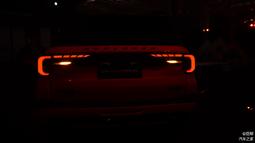 再看探险者昆仑巅峰版的尾部设计,整体也是比较厚重的设计,尾灯组逐渐简约化,并且最为明显的变化在于字体的变动,探险者的英文标识“EXPLORER”为黑橙拼色的设计,下方的字体则为全黑处理。个人还是喜欢昆仑巅峰版的尾部设计风格。