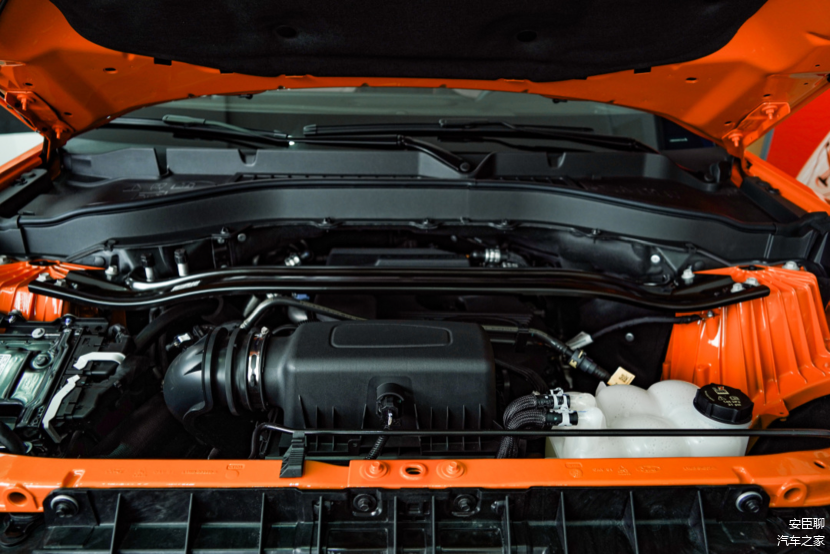 另外作为一台强调越野性能的车子,探险者昆仑巅峰版前包围也经过了重新设计,直接将橙色的拖车钩外露在两旁,并且还配有银色的下护板,实用的同时在野外陷车的时候也能更加方便拖拽车辆脱困,野性的气息一下子就到位了。